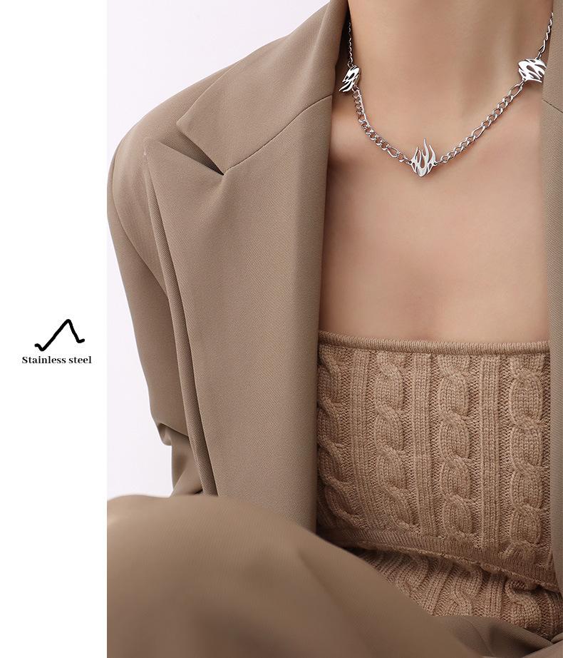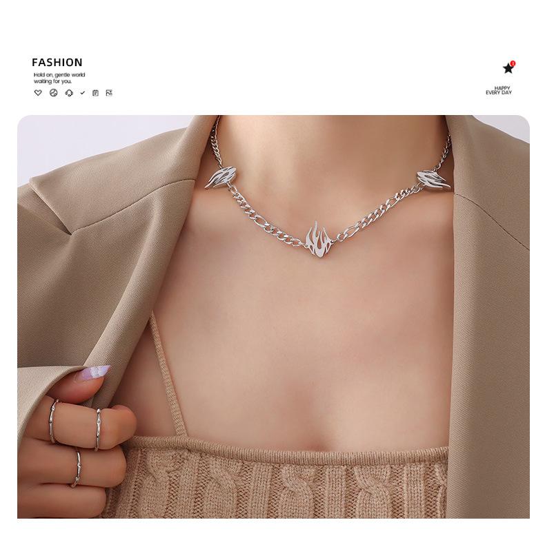 Compra Collar de Elemento de Llama de Estilo Ins Frío Europeo y Americano Joyería Unisex Acero Titanio Estilo Neutro Collar de Lujo Ligero al por mayor en Joom.pro