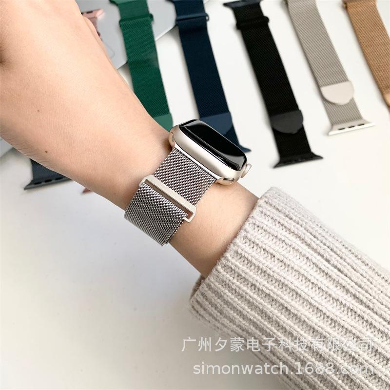 Correa de reloj magnética de metal milanesa de doble sección con cola redonda adecuada para Apple Watch de 11.ª generación 10/987Seultra