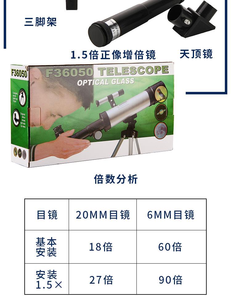 El aumento máximo de este modelo: 90 veces (distancia focal del objetivo/distancia focal del ocular * varias veces multiplicador de Barlov = aumento máximo)