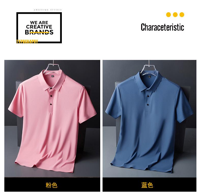 ¡Gran Venta en Tienda en Línea! Camiseta de Manga Corta de Seda de Hielo Sin Costuras para Hombre Verano Transpirable Sin Planchado Polo de Manga Corta para Hombre T6688
