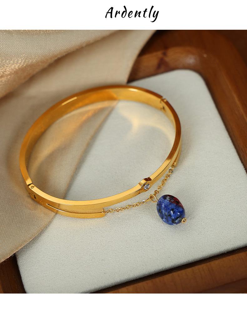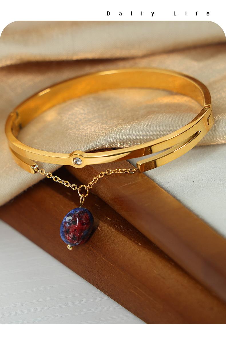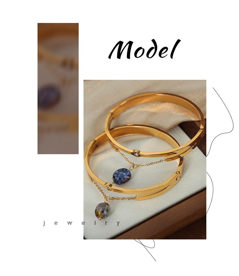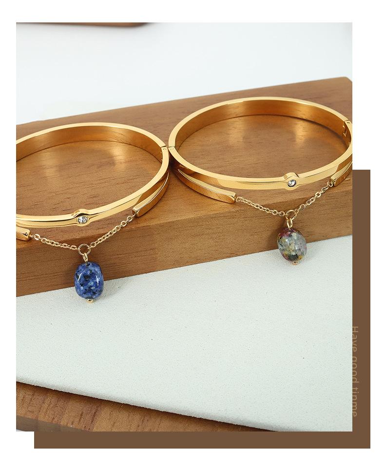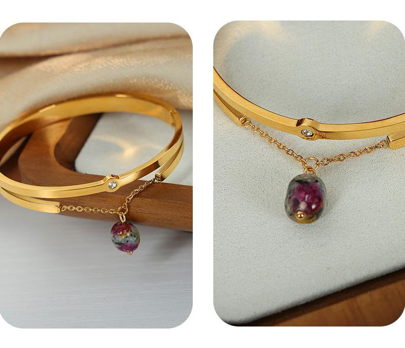 Moda Viajero Estilo Frío Joyería de Doble Capa con Incrustaciones de Zirconio Cadena de Costura Diseño de Colgante de Piedra Natural Pulsera de Titanio