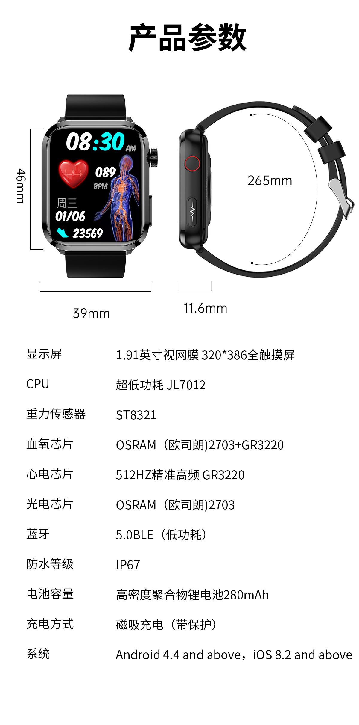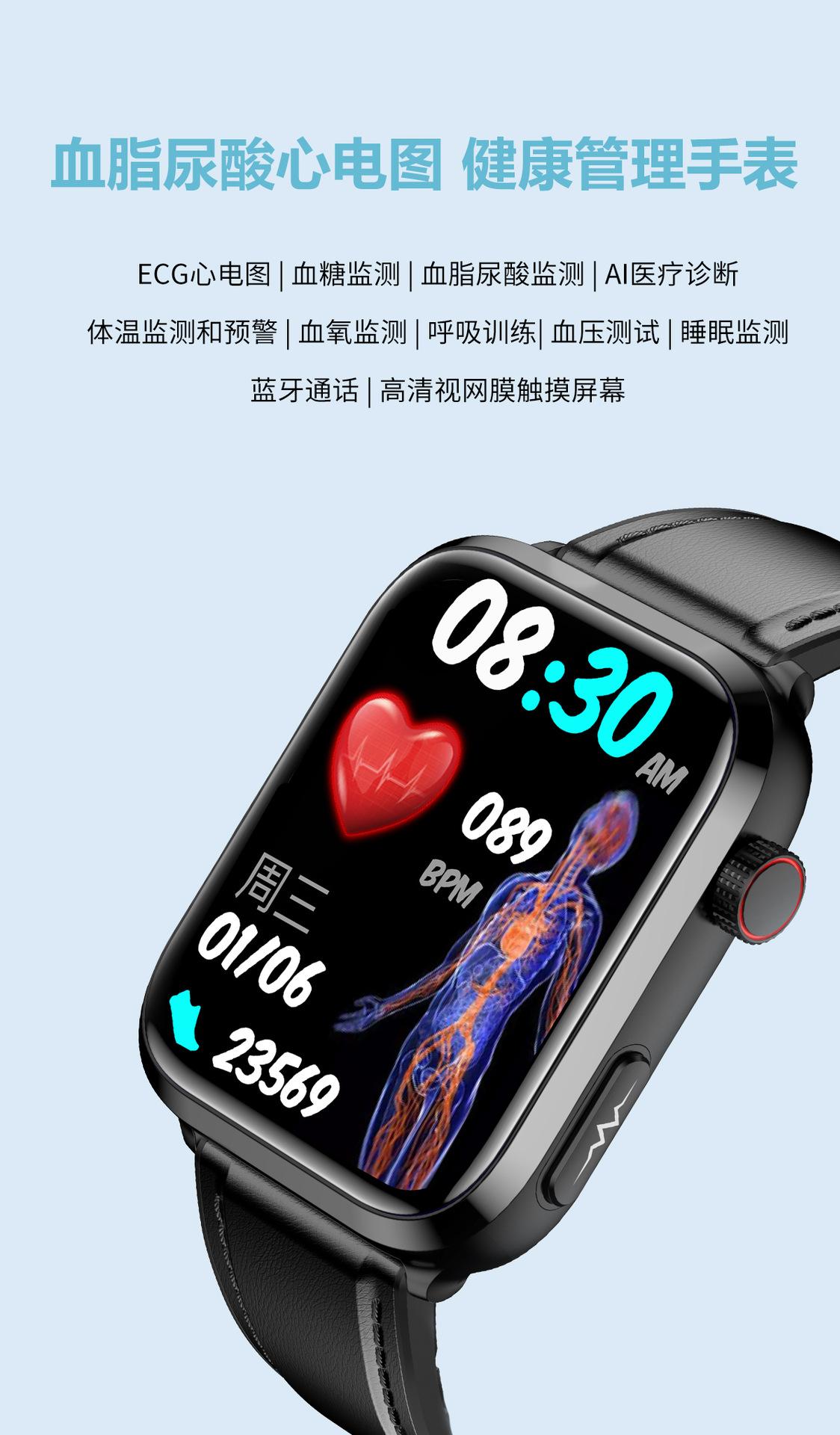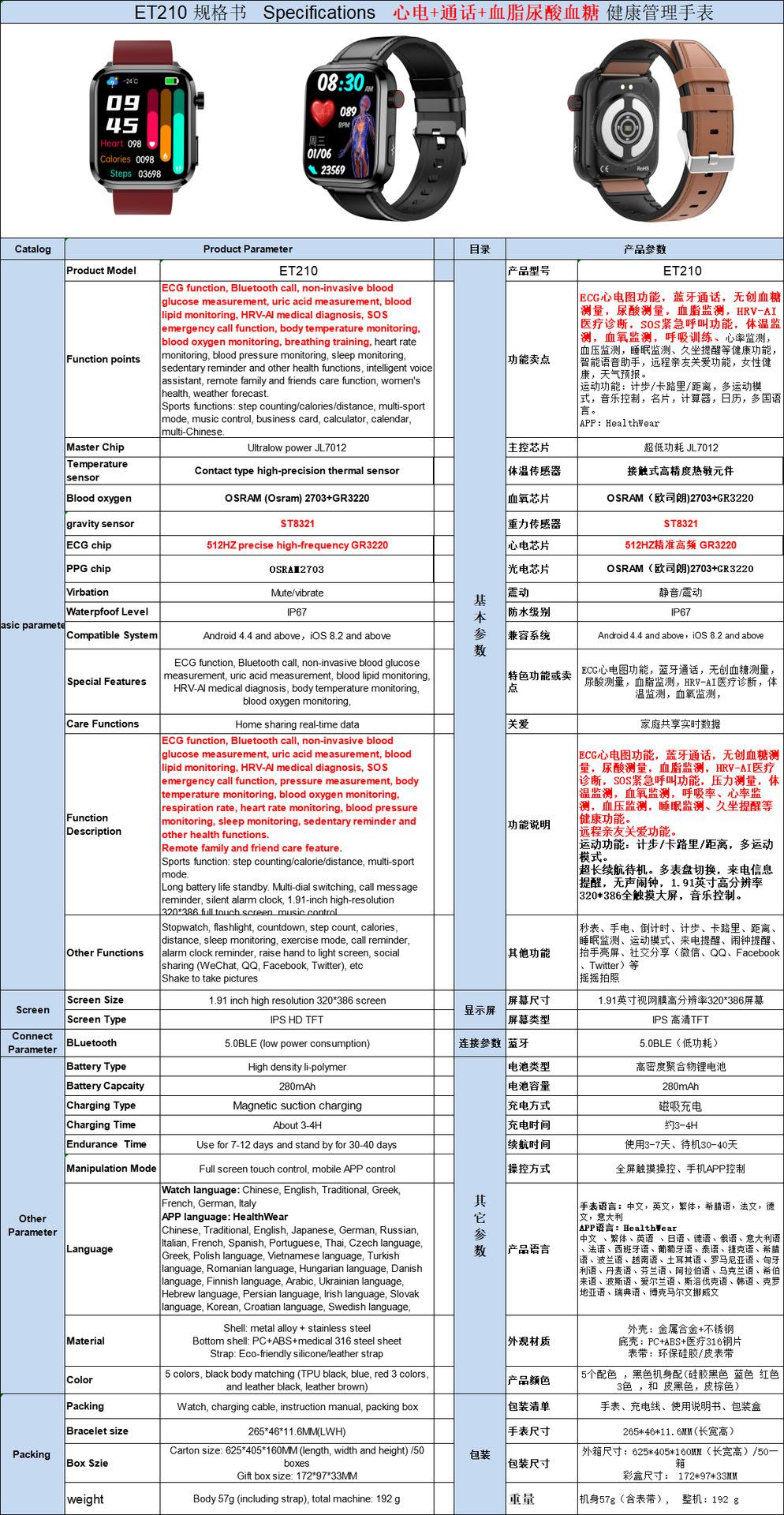 Nuevo reloj inteligente ET210 con Bluetooth, llamadas, ECG, glucosa en sangre no invasiva, temperatura corporal, frecuencia cardíaca, monitoreo del sueño, multiejercicio