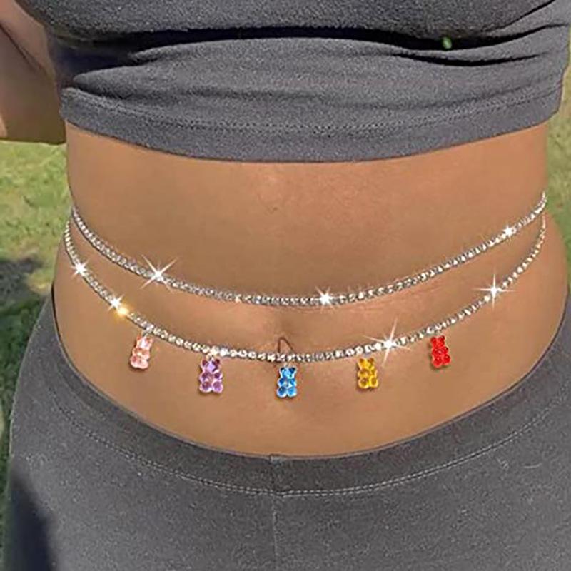 Cadena de cintura de resina de color caramelo transfronteriza europea y americana, oso, callejera, sexy, con pedrería, cadena para el vientre, accesorios para cadena de cintura¥10.8Compre ya