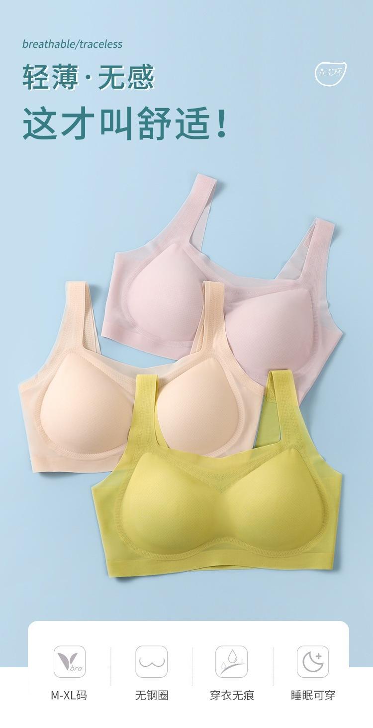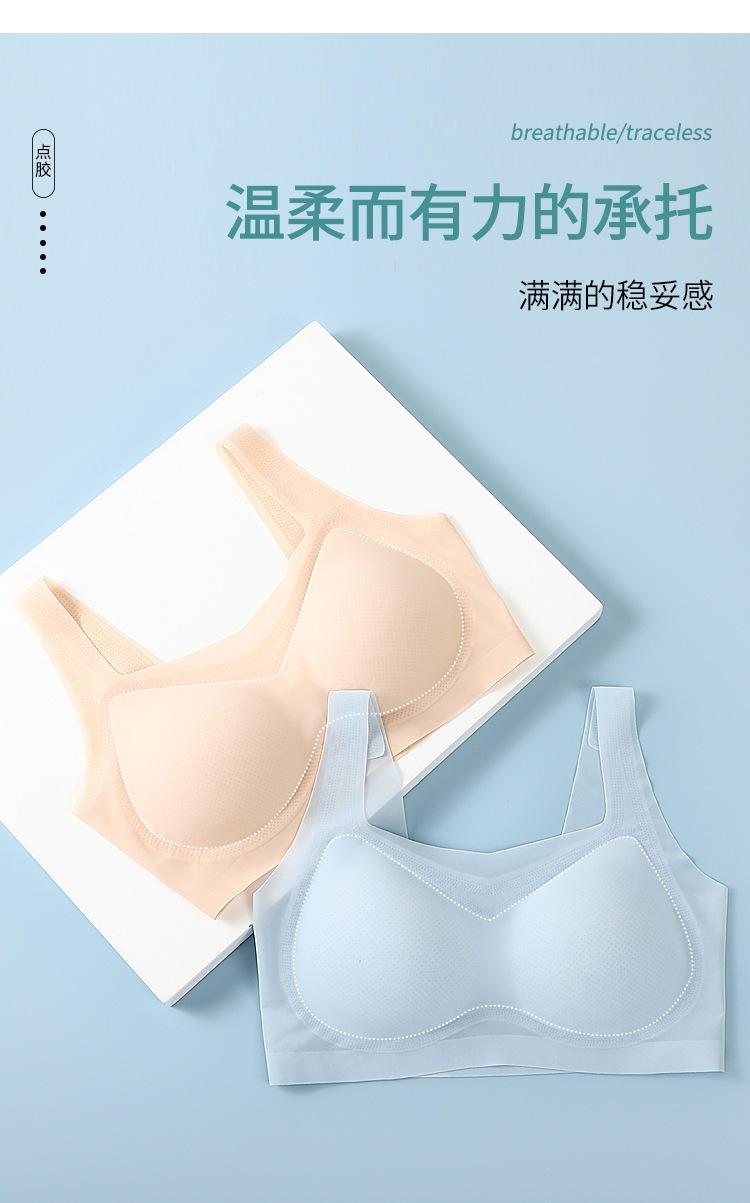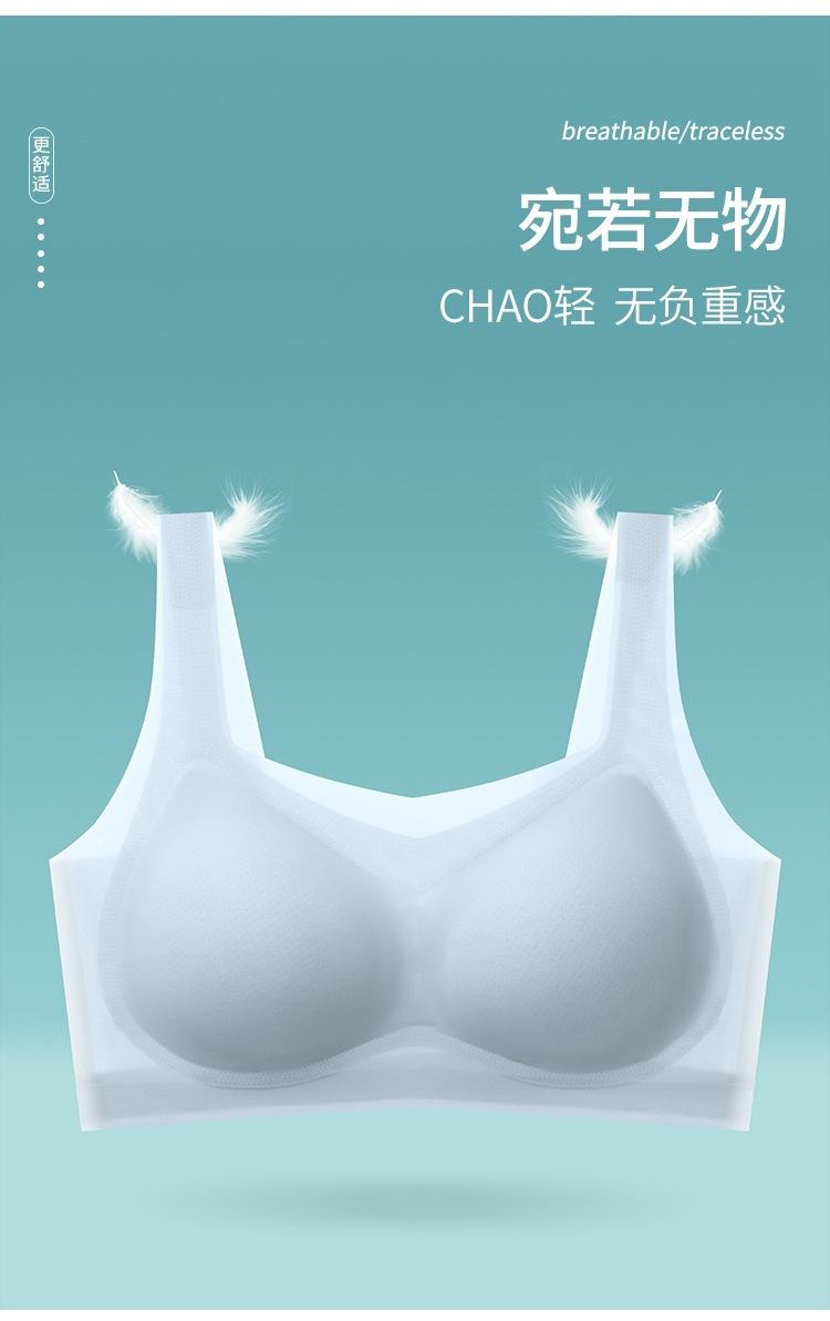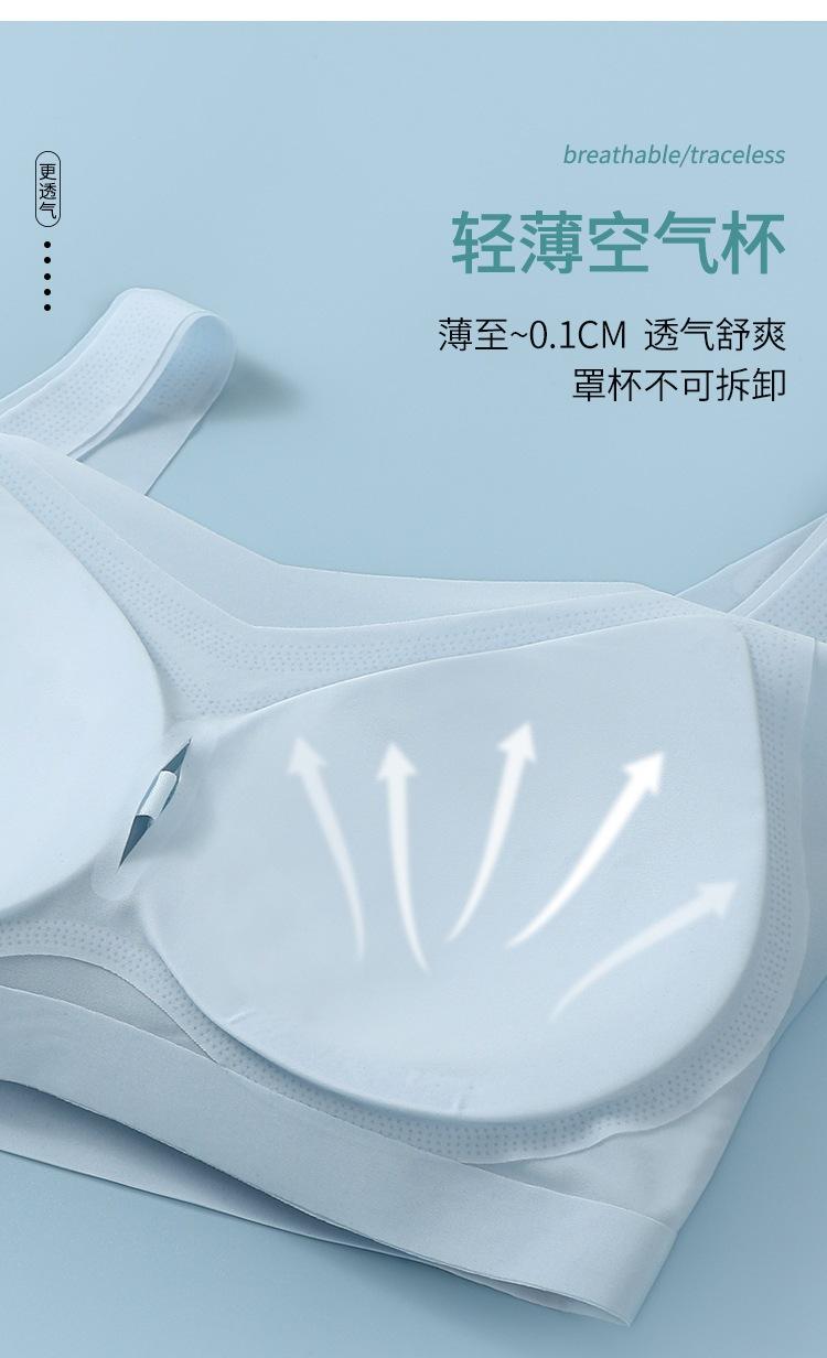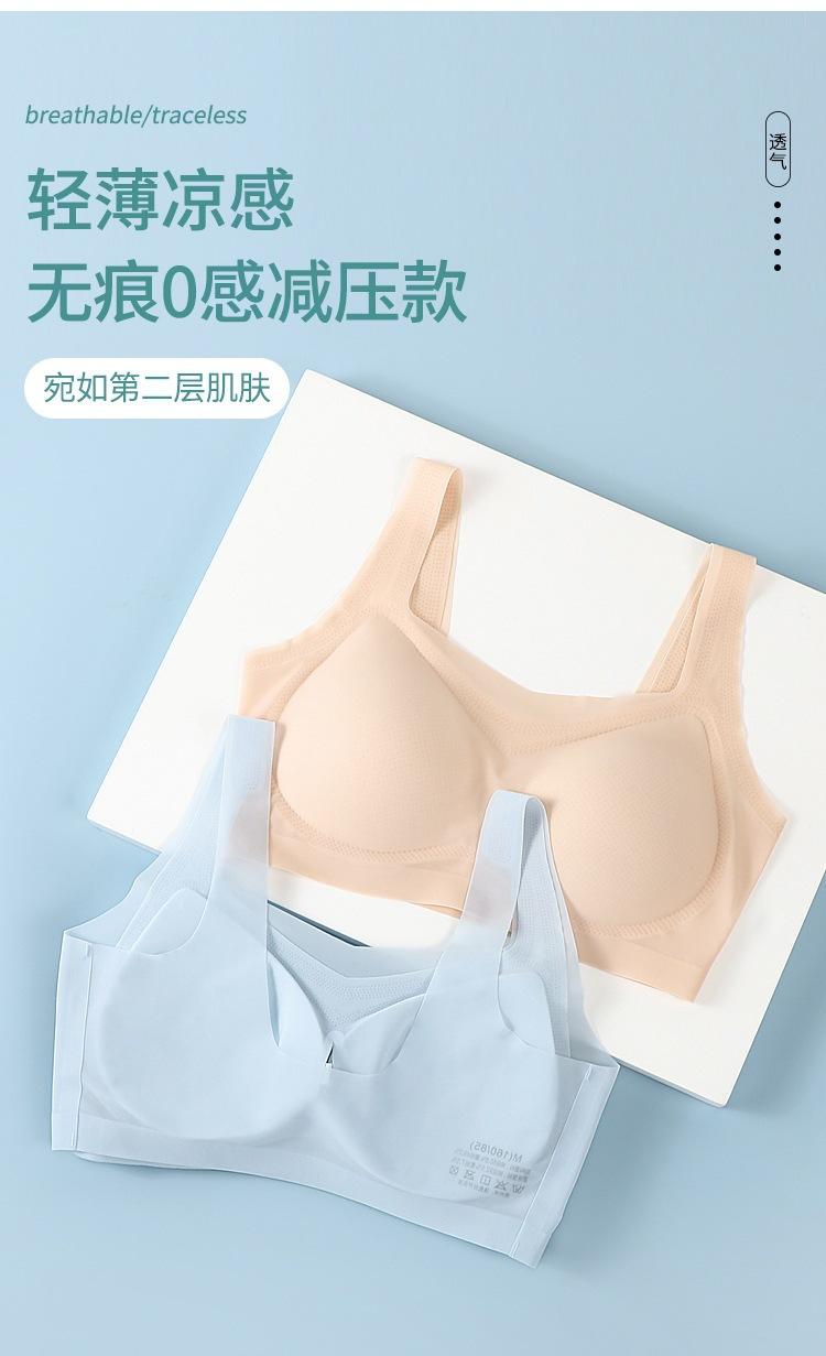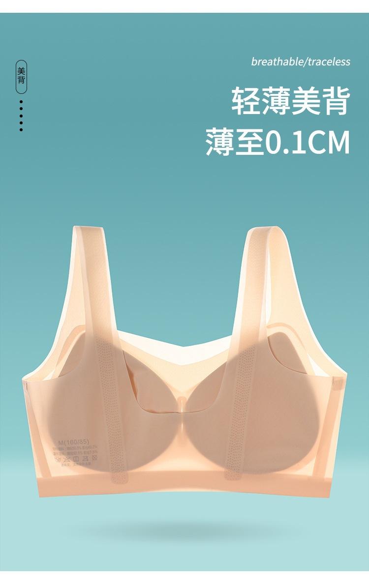 Sujetador de seda de hielo ultrafino para mujer, sin costuras, de acero, cómodo, transpirable, para pecho pequeño, espalda grande y hermosa, para dormir