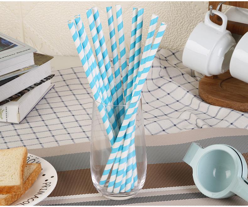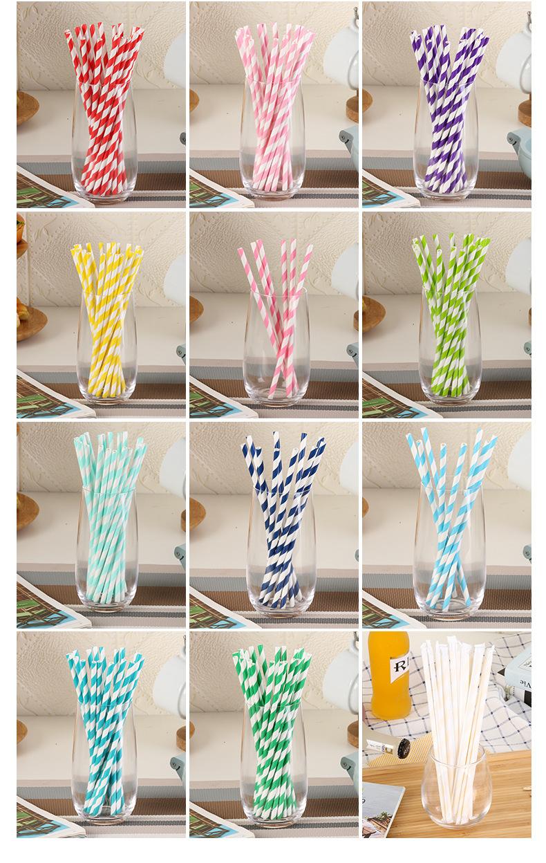 Pajita desechable de papel degradable, pajita artística de rayas de colores, pajita decorativa para bar o comedor