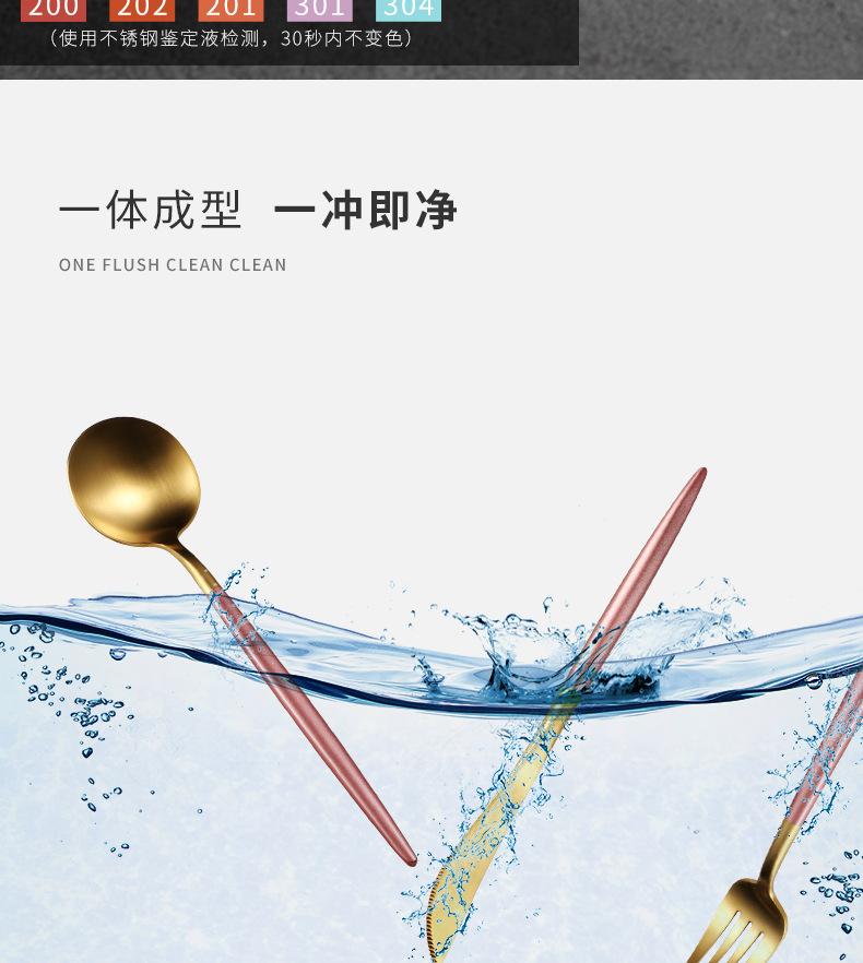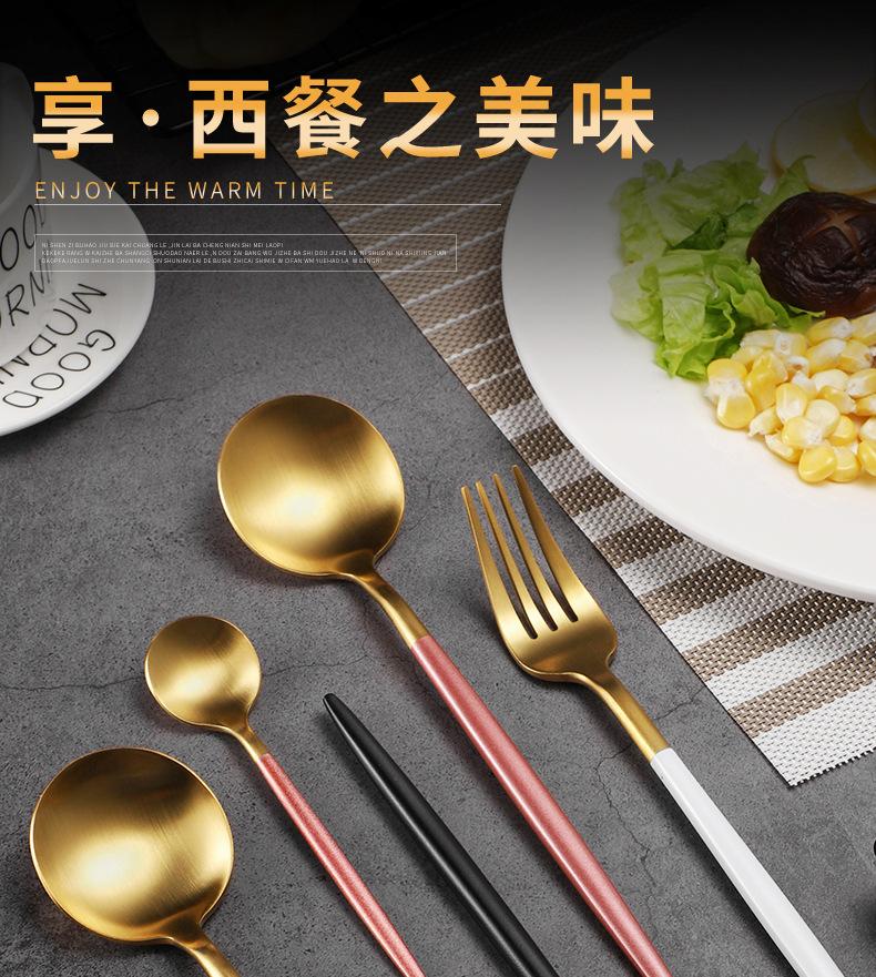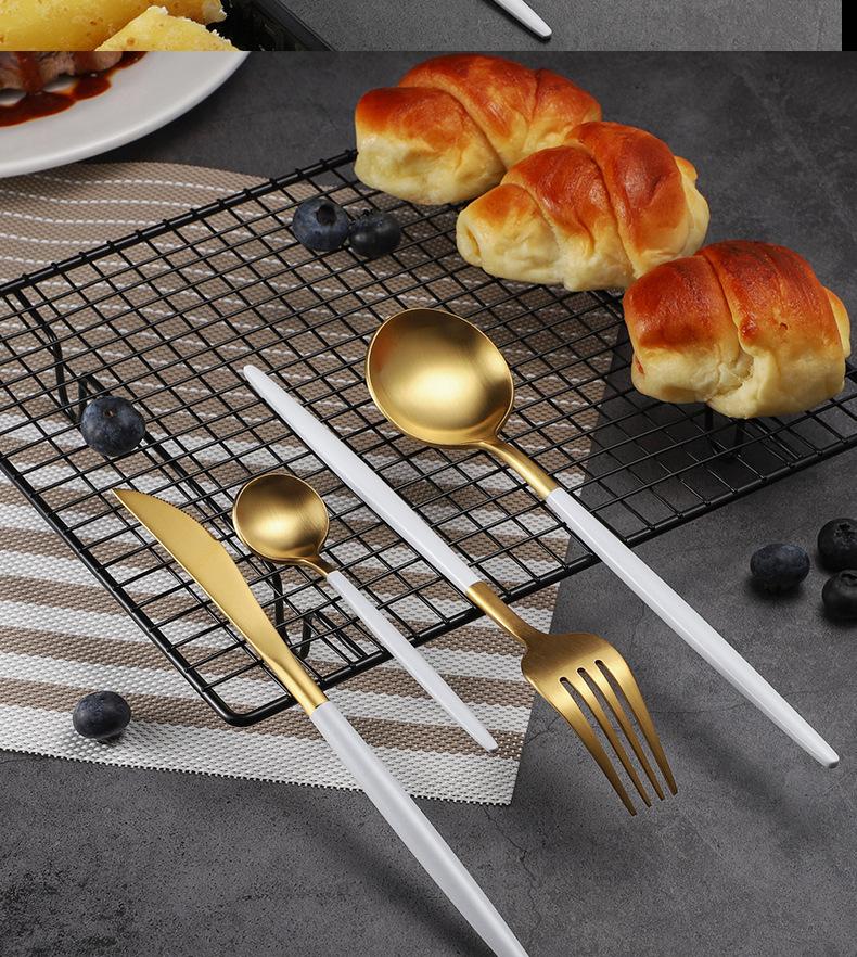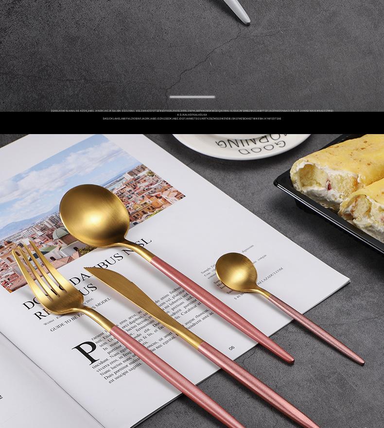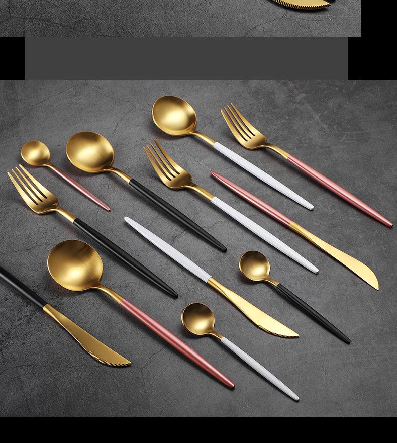 Acero Inoxidable 304 de Grado Alimenticio Cubiertos Portugueses Cuchillo, Tenedor y Cuchara Juego de Cuatro Piezas Cuchara Chapada en Oro Juego de Cuchillo y Tenedor Escandinavo para Comida Occidental