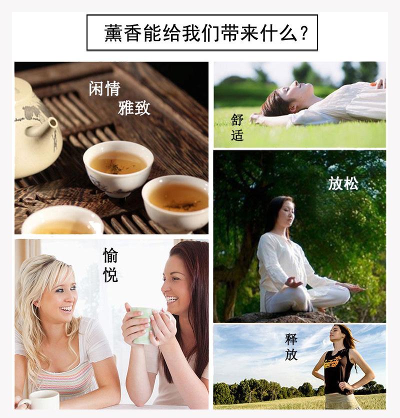 1. Quemador de aromaterapia: Vierta un poco de agua limpia en el quemador de aromaterapia, agregue 5-6 gotas de aceite esencial, luego encienda la vela, el agua calentada hará que la fragancia se emita lentamente.
