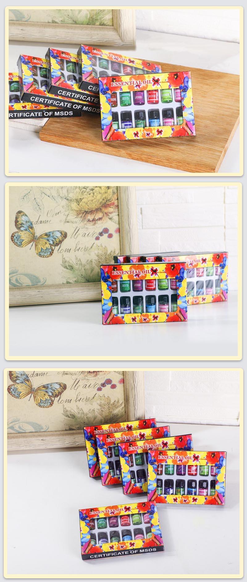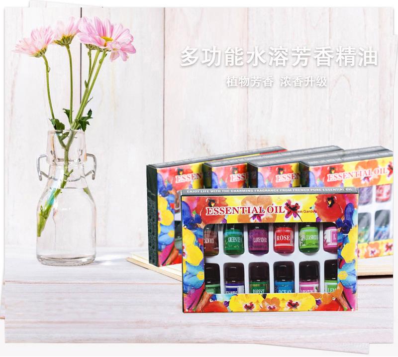 Venta al por mayor 6 botellas de 10 ml de juego de aceites esenciales de aromaterapia solubles en agua aroma humidificador fragancia interior inglés completo transfronterizo