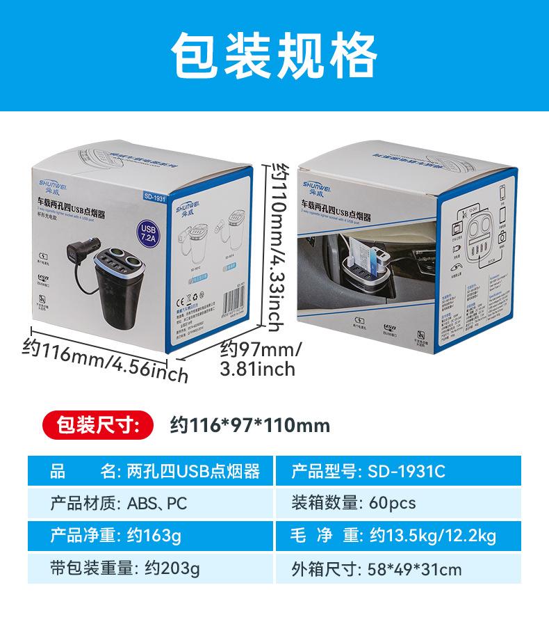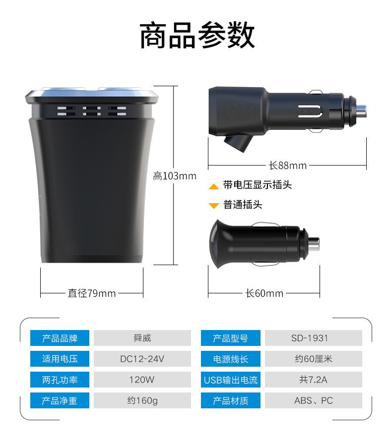 Cargador y convertidor Shunwei de 24 V para coche, tipo taza, con un solo puerto USB, para encendedor de coche, multiusos.