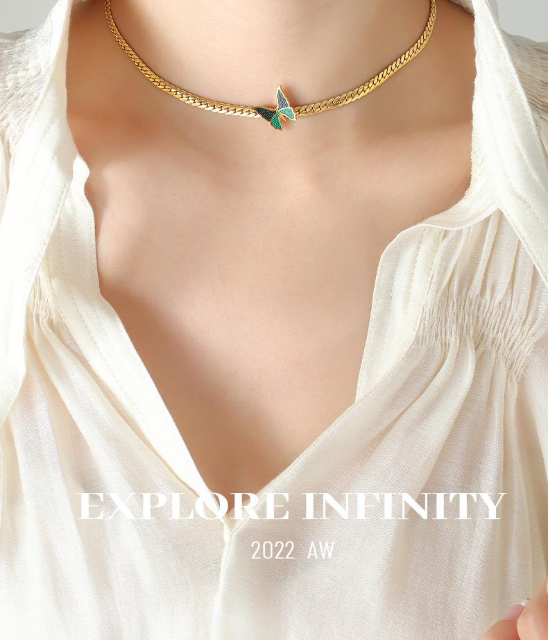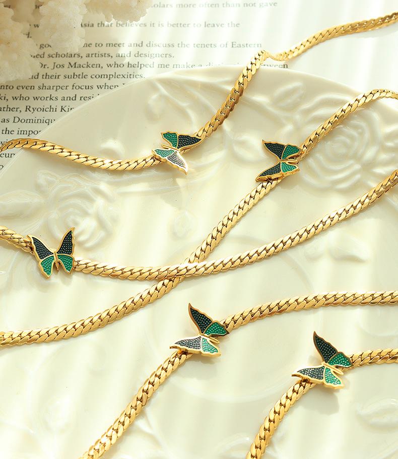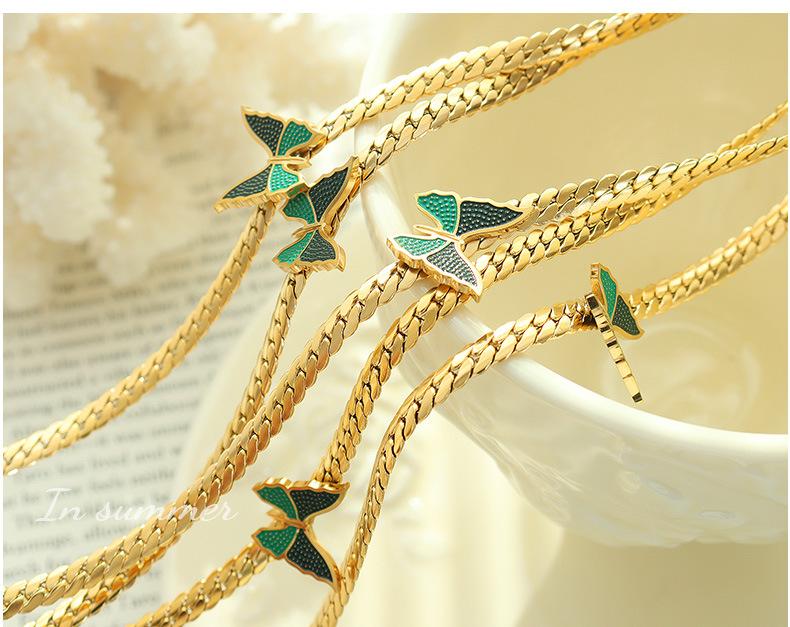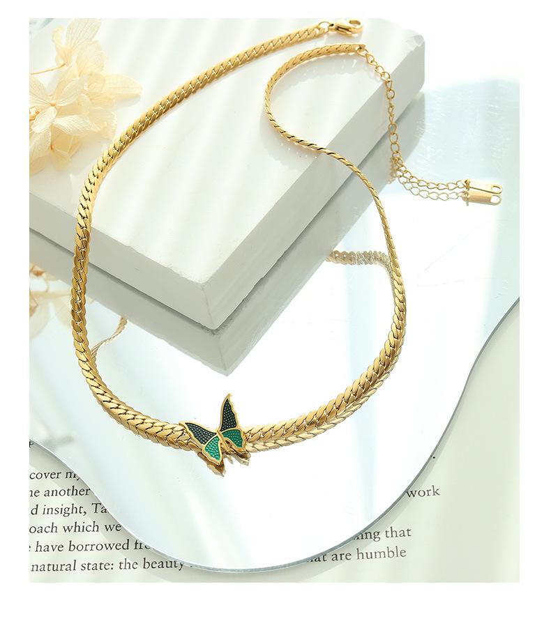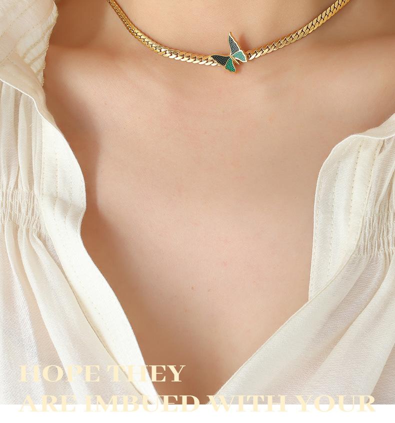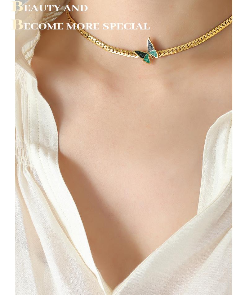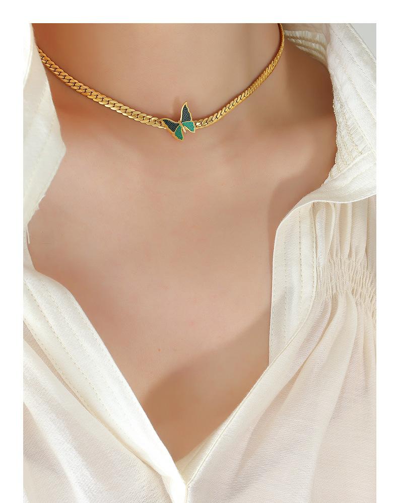 Moda ins europea y americana creativa hermosa viento frío personalidad aceite mariposa incrustada collar acero titanio chapado en oro cadena cubana
