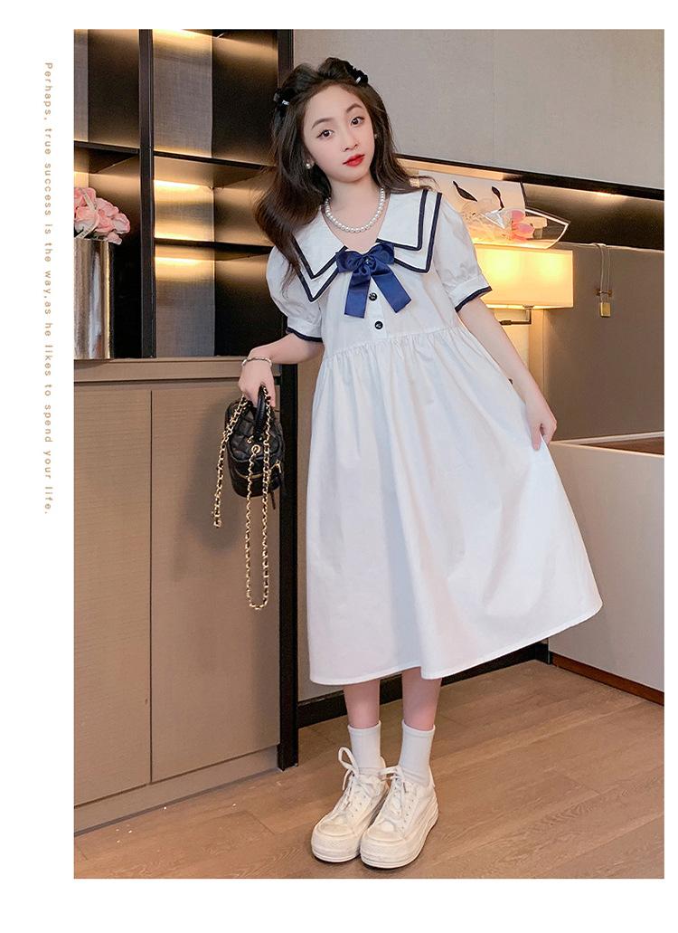 Vestido de Verano para Niñas 8-15 Años Estilo Coreano Estilo Extranjero Falda de Verano para Niños Falda Larga Vestido de Princesa para Niñas Medianas y Grandes