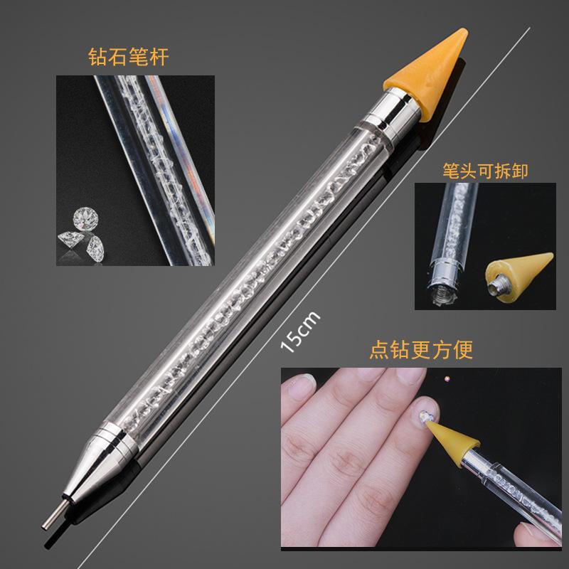 Nuevo taladro de punta doble para uñas, bolígrafo de descarga, crayón, punta de cristal, aguja de flor, bolígrafo de taladro pegajoso, herramienta para uñas, bolígrafo de doble punta
