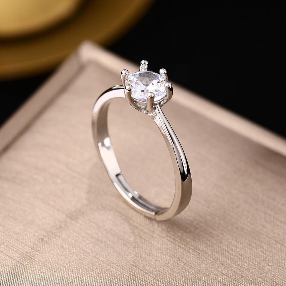 Anillo de Diamantes de Zirconia Minimalista Personalizado Estilo Ins de Celebridad de Internet Apertura Ajustable Nicho Anillo Combinable Joyería para Mujer