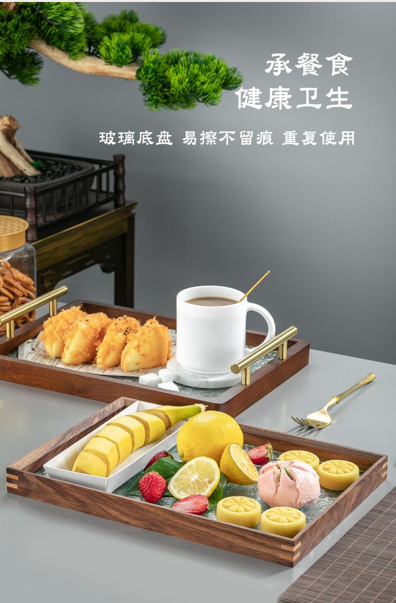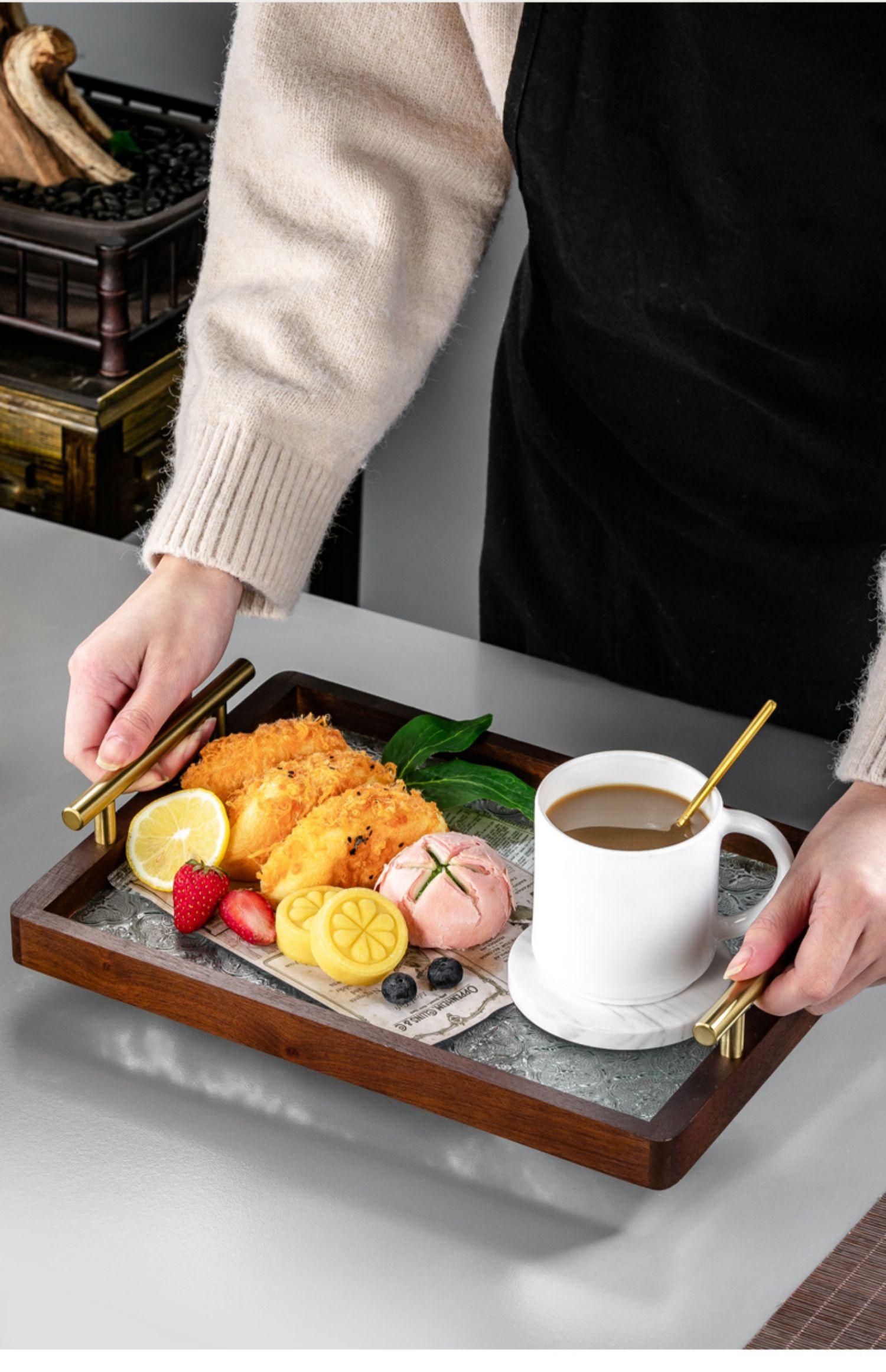 Bandeja de Madera Maciza y Vidrio Pequeña de Nogal Almacenamiento de Tazas Fruta Sala de Estar Mesa de Café Bandeja para Snacks Bandeja de Fruta Vajilla