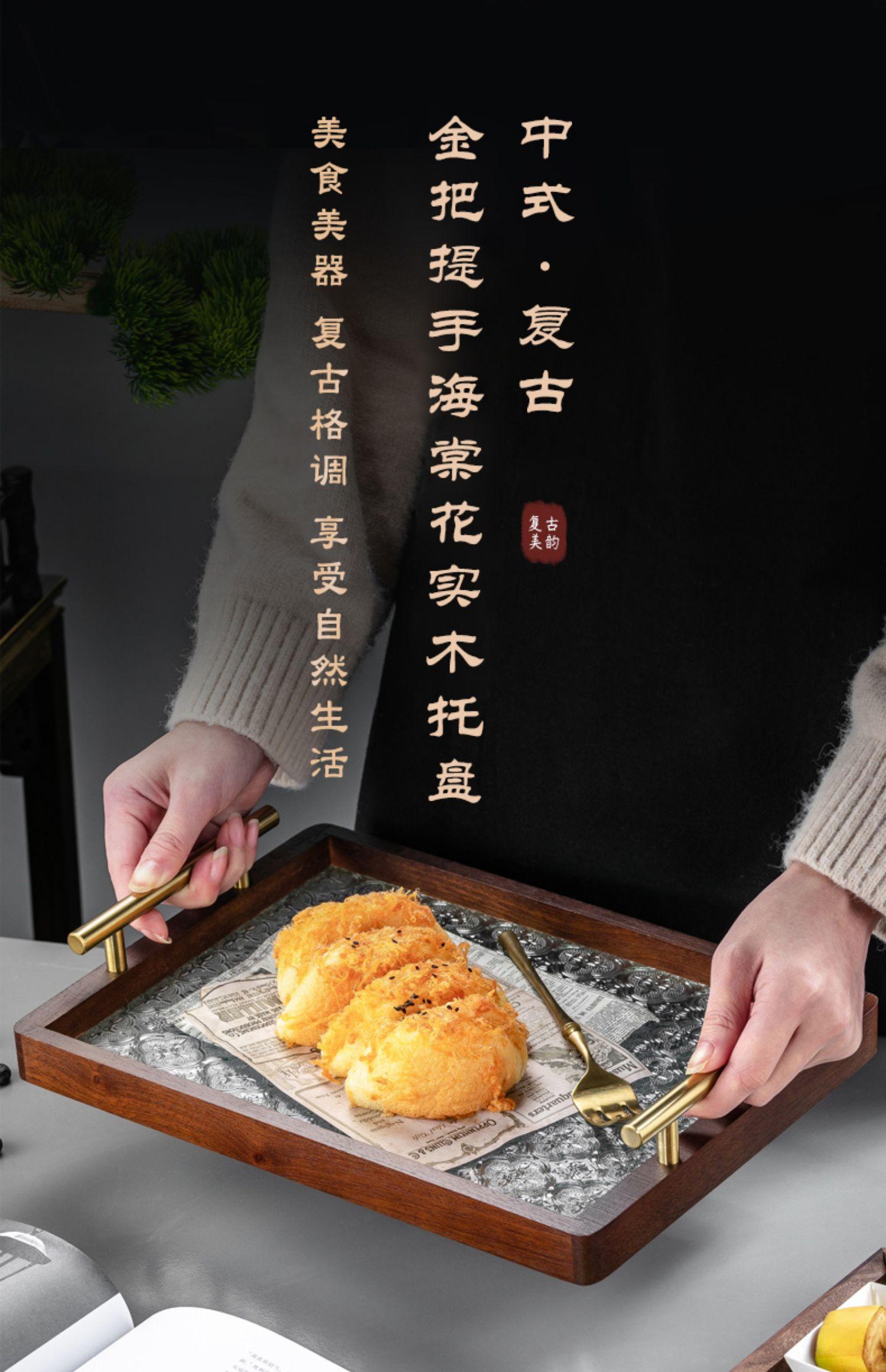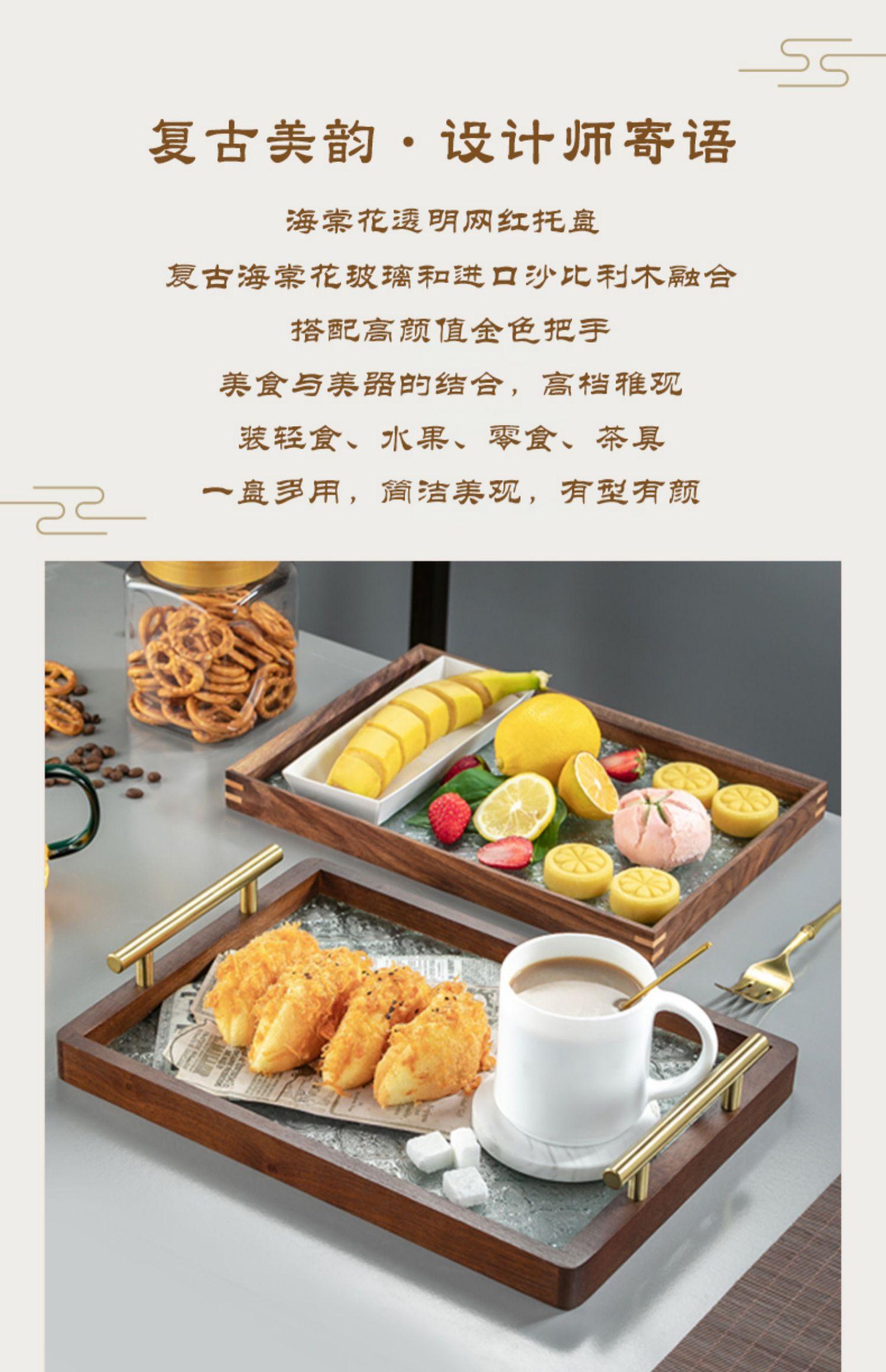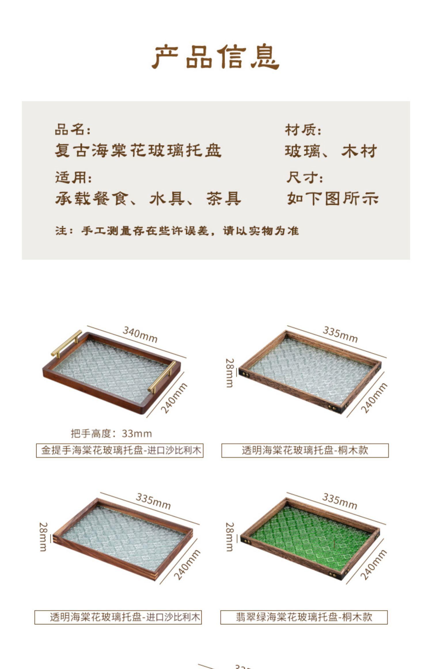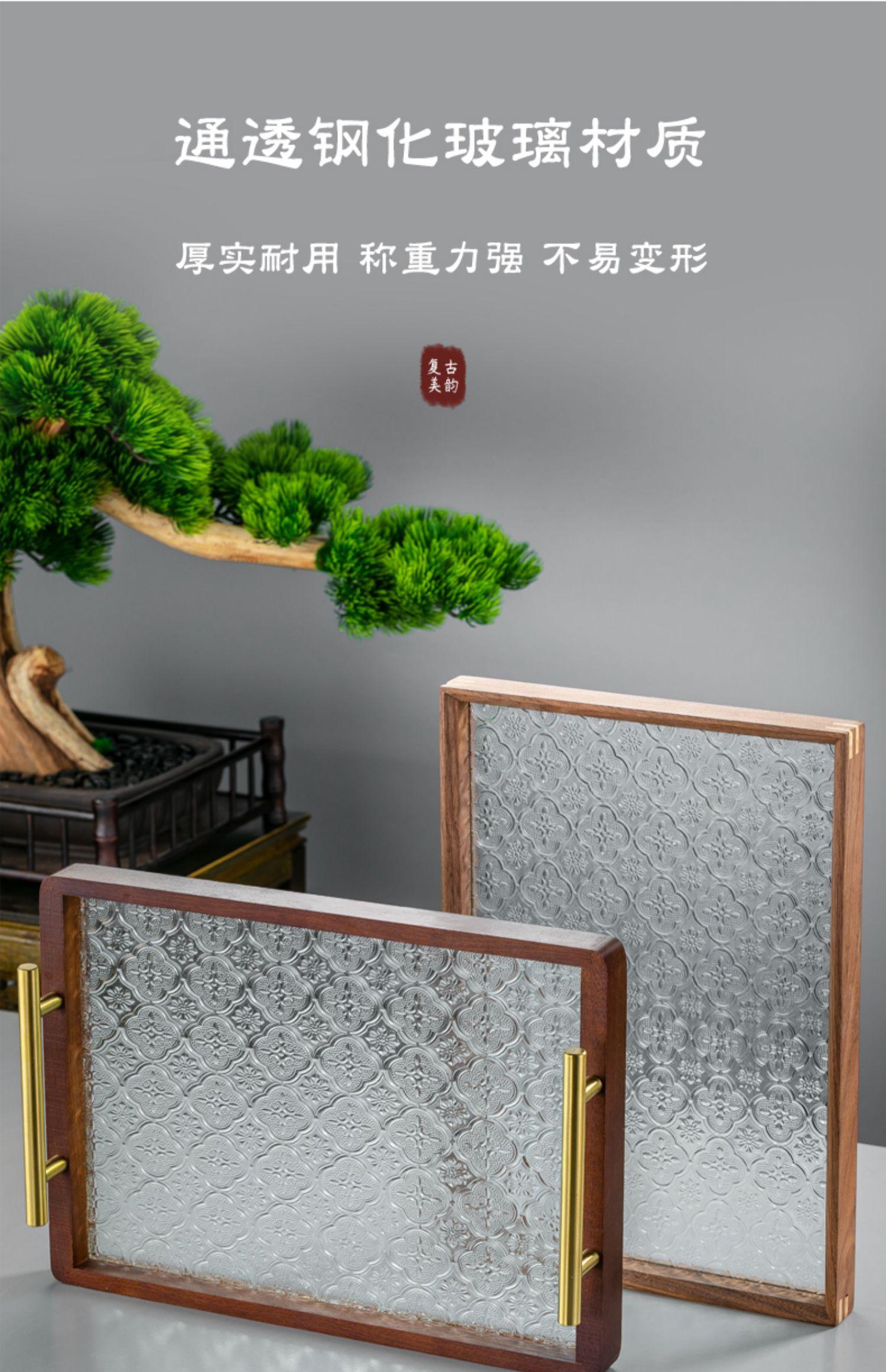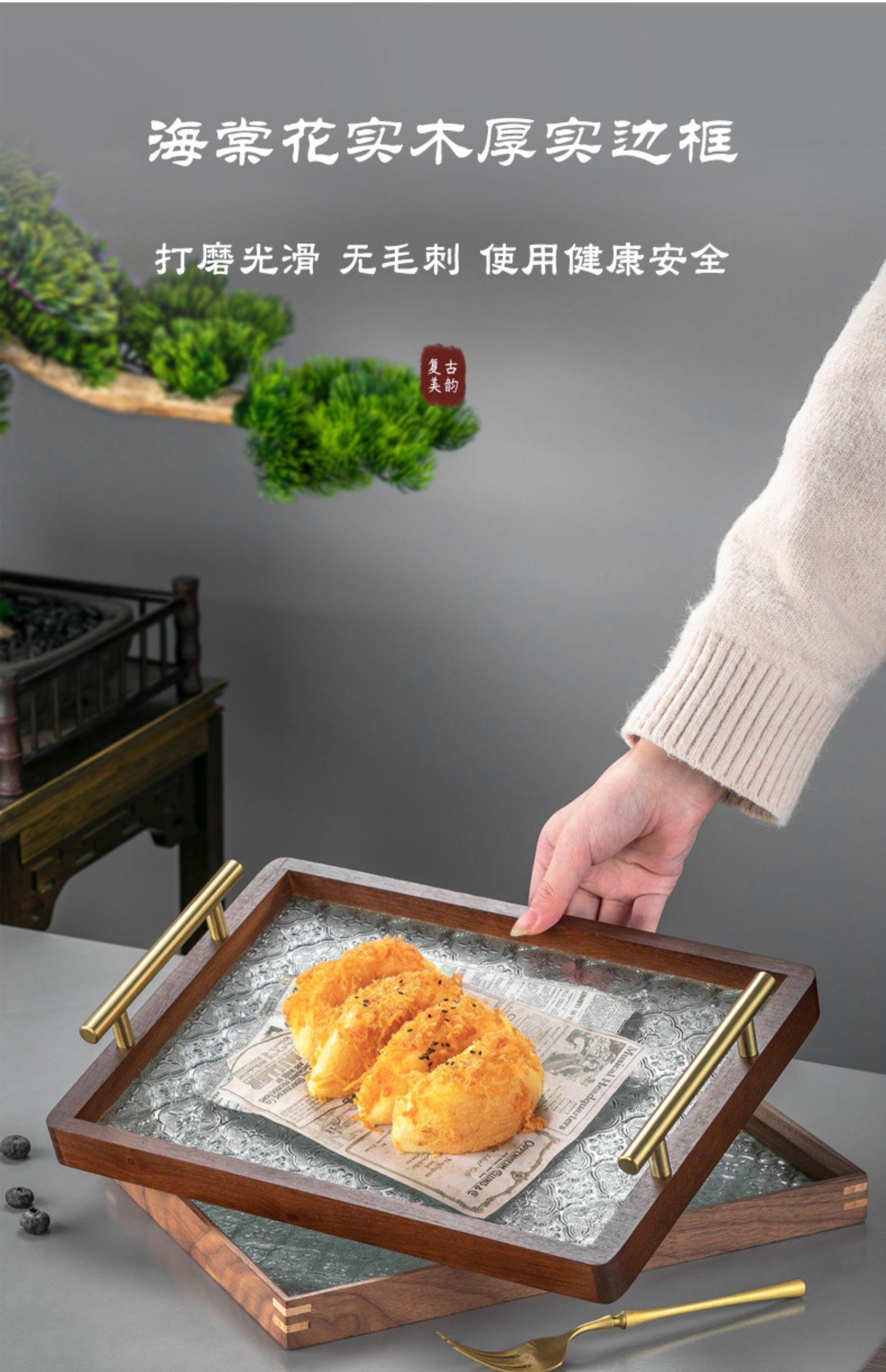 Walnut green tray [Begonia flower texture]], Black walnut vintage Begonia flower glass plate transparent 34*24...