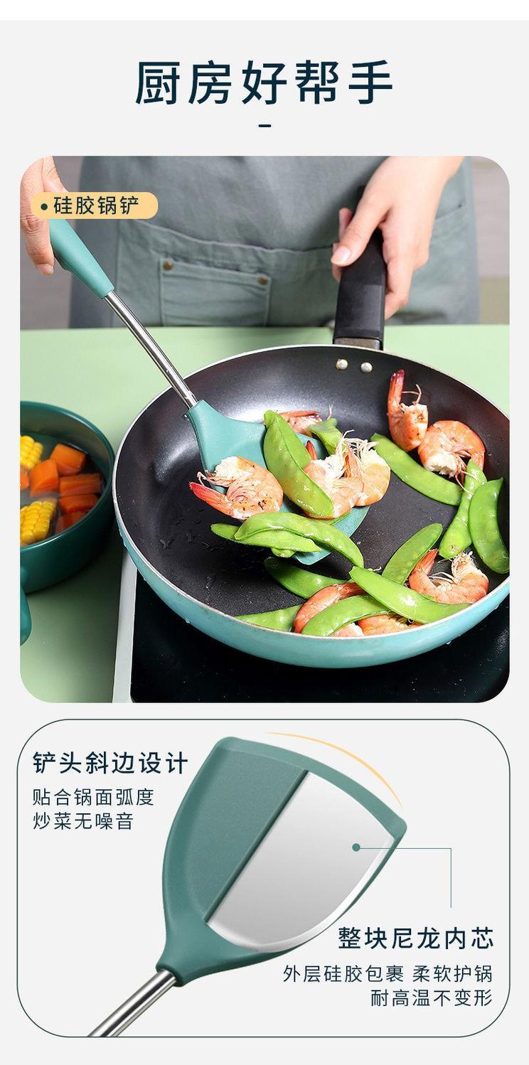 Espátula de silicona de grado alimenticio, cuchara para sopa de arroz, juego resistente a altas temperaturas, espátula para cocinar, sartén antiadherente con venta directa de fábrica