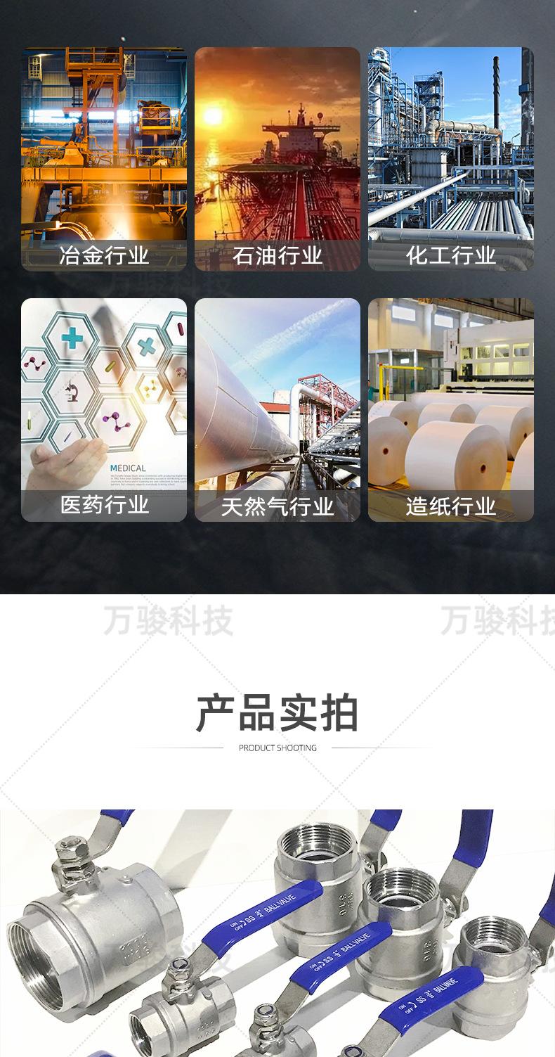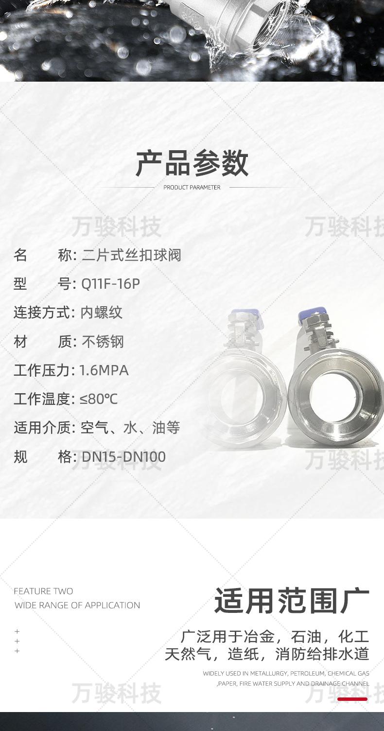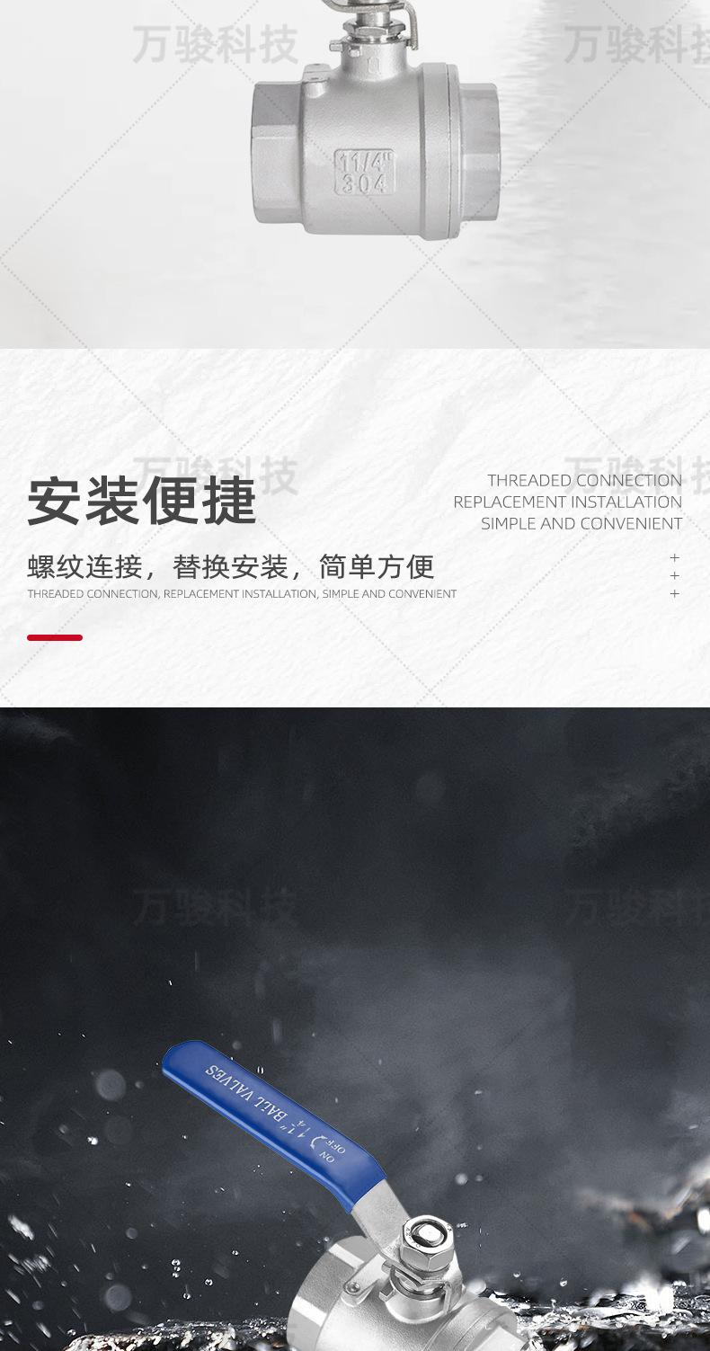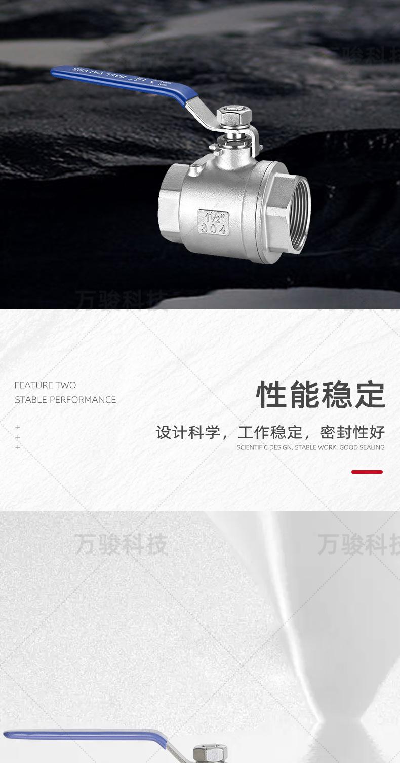 Acero inoxidableEs una válvula de bola de dos piezas de hierro de cuerpo ligero 201, 65 y superior es una bola hueca de acero inoxidable, y el cuerpo de la válvula está fundido con un estándar 316.