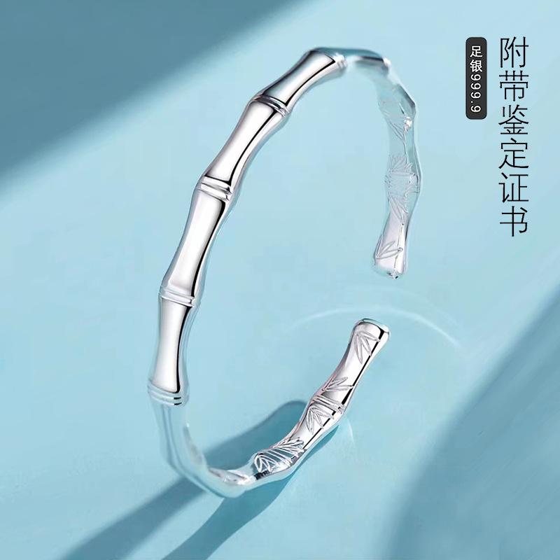 Pulsera de bambú de plata pura 9999 plata esterlina para mujer versión sólida ancha nicho festival pulsera de plata de alto nivel nueva pulsera regalo