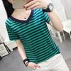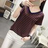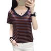 Compra Camiseta de Algodón Puro de Manga Corta para Mujer Verano 2021 Talla Grande Holgada Rayas Cuello en V Top de Media Manga Urbana Casual al por mayor en Joom.pro
