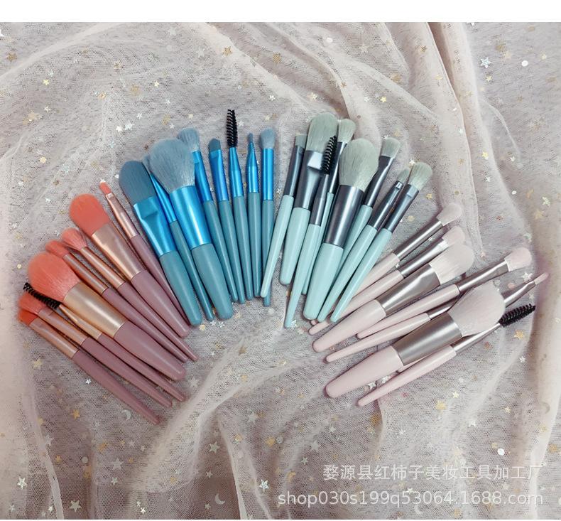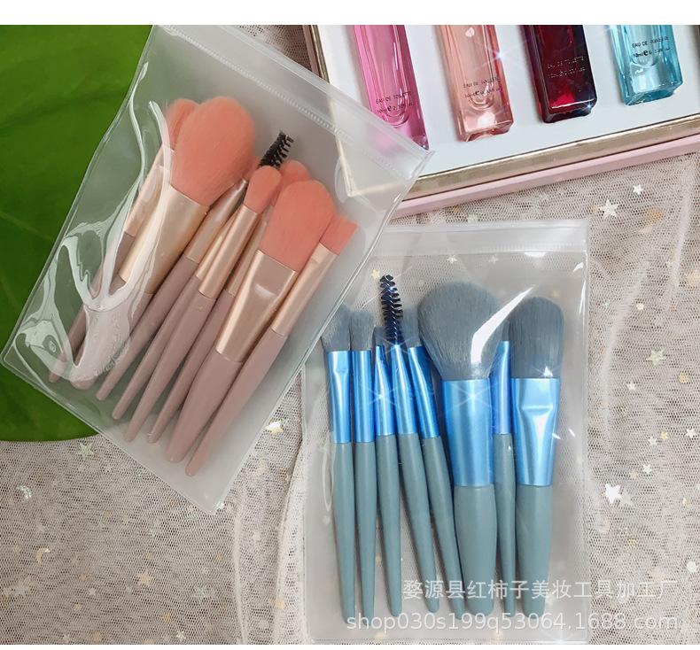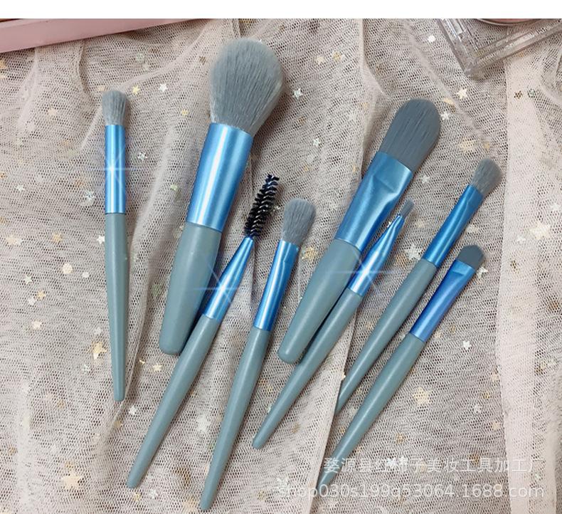 Set de 8 Brochas de Maquillaje Portátiles Macaron Transfronterizo Nuevo Set Completo Portátil