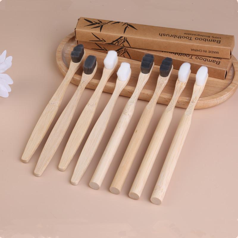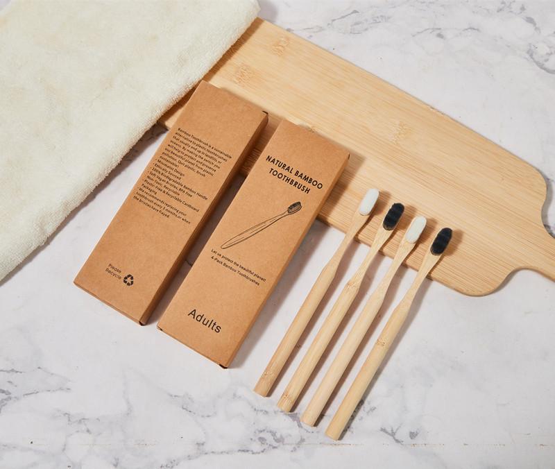 Cepillo de dientes desechable de bambú para viajes, hoteles, B&B, caja de papel Kraft, cepillo de dientes de cerdas suaves de carbón de bambú, juego de cepillos de dientes de bambú de comercio exterior
