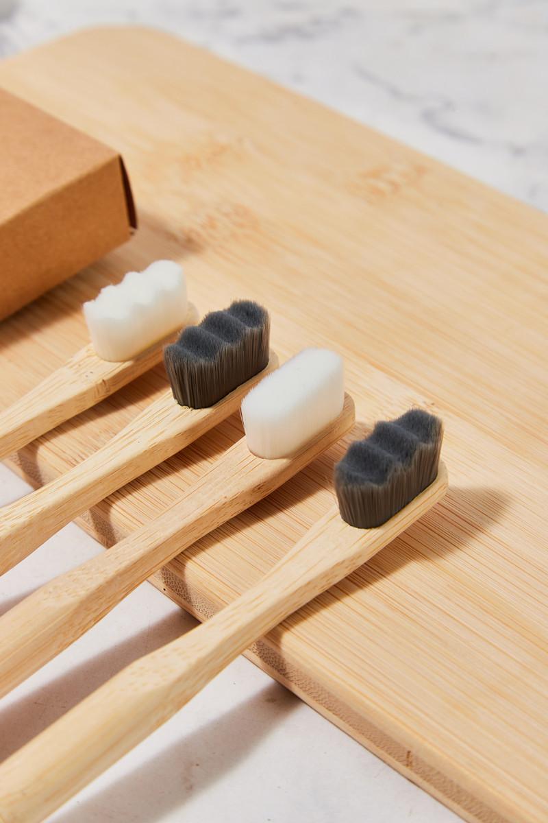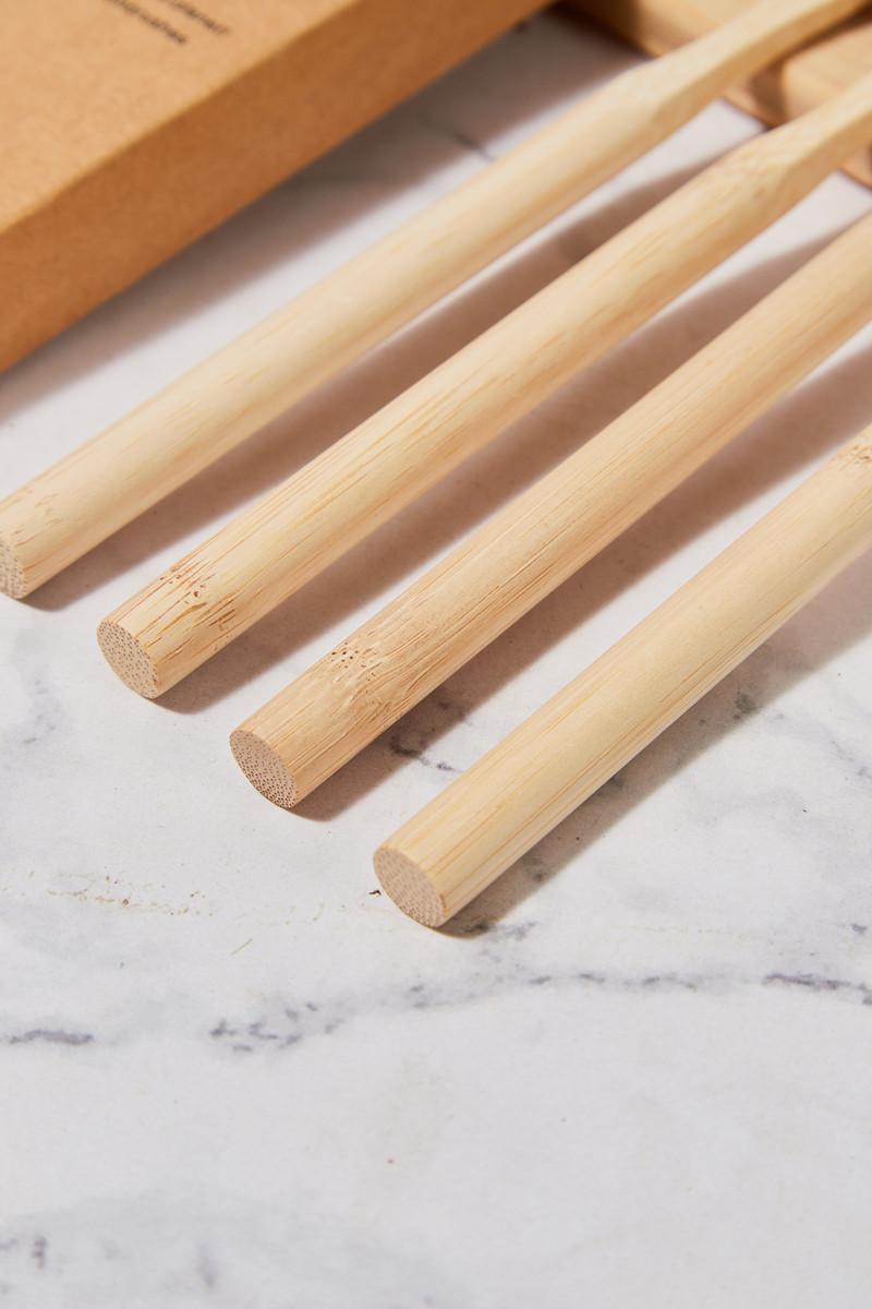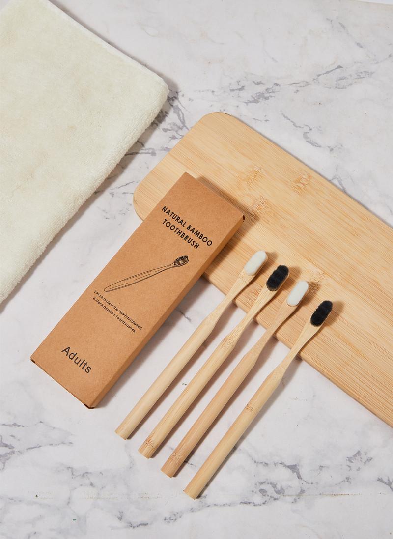 Juego de cepillos de dientes desechables de bambú para hoteles y B&B, cepillo de dientes de cerdas suaves, bolsa de papel kraft a la que se puede agregar pasta de dientes