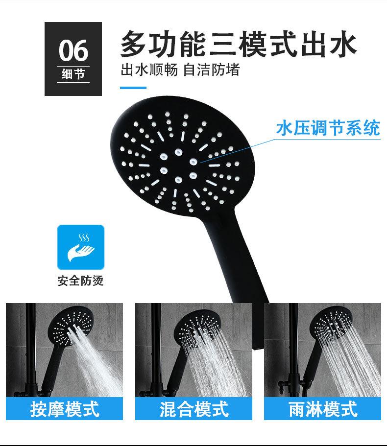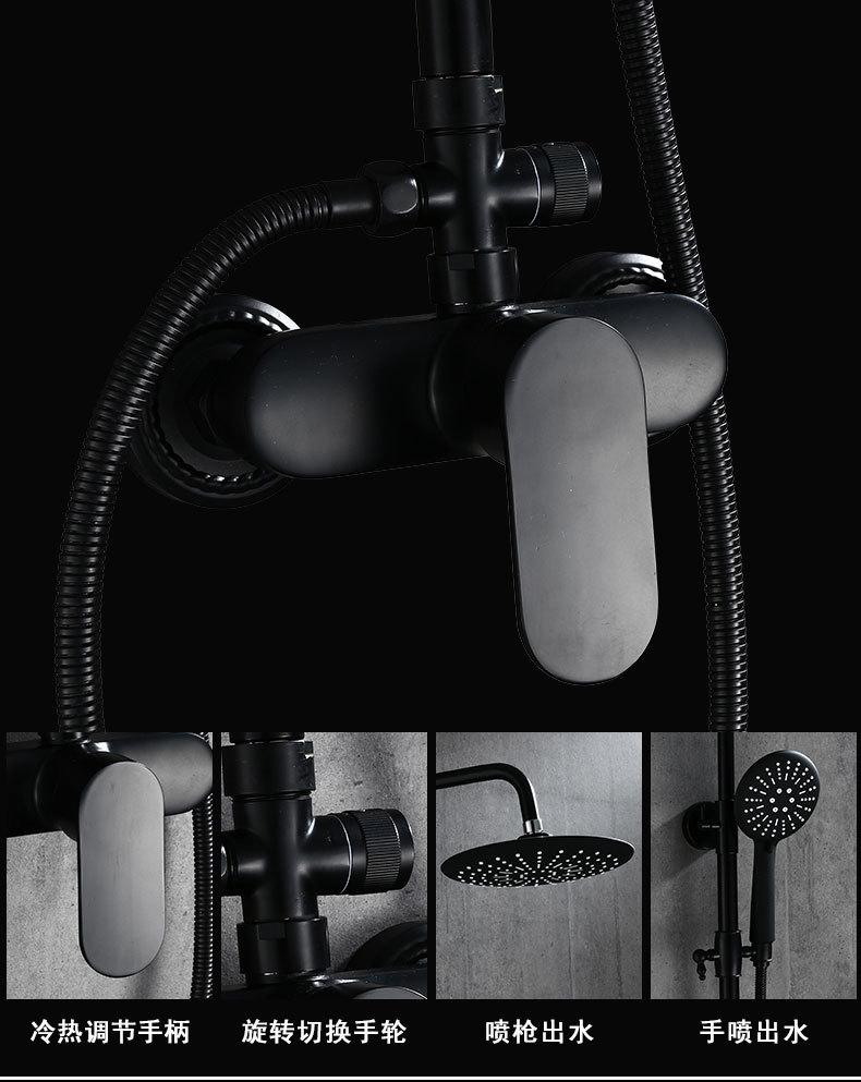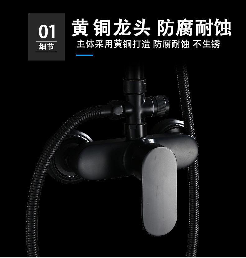 Ducha de baño presurizada de hotel, color negro, sin función bajo el agua, ducha de latón.