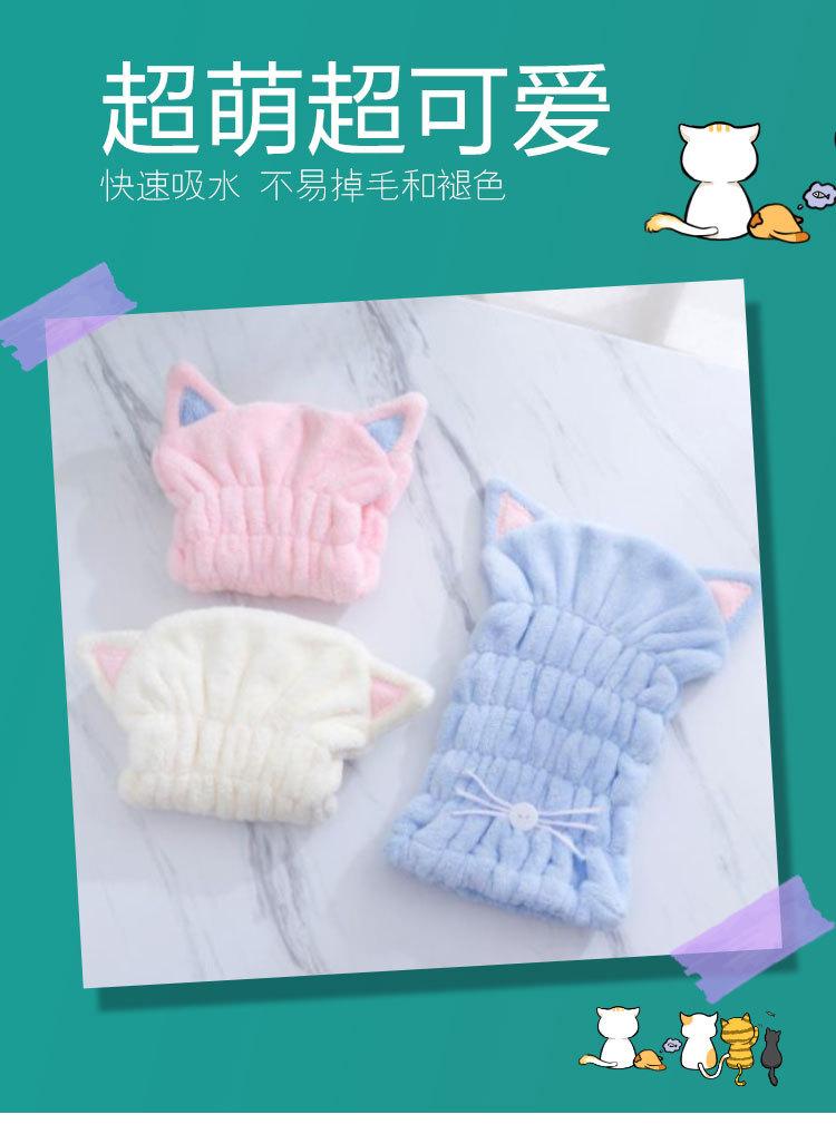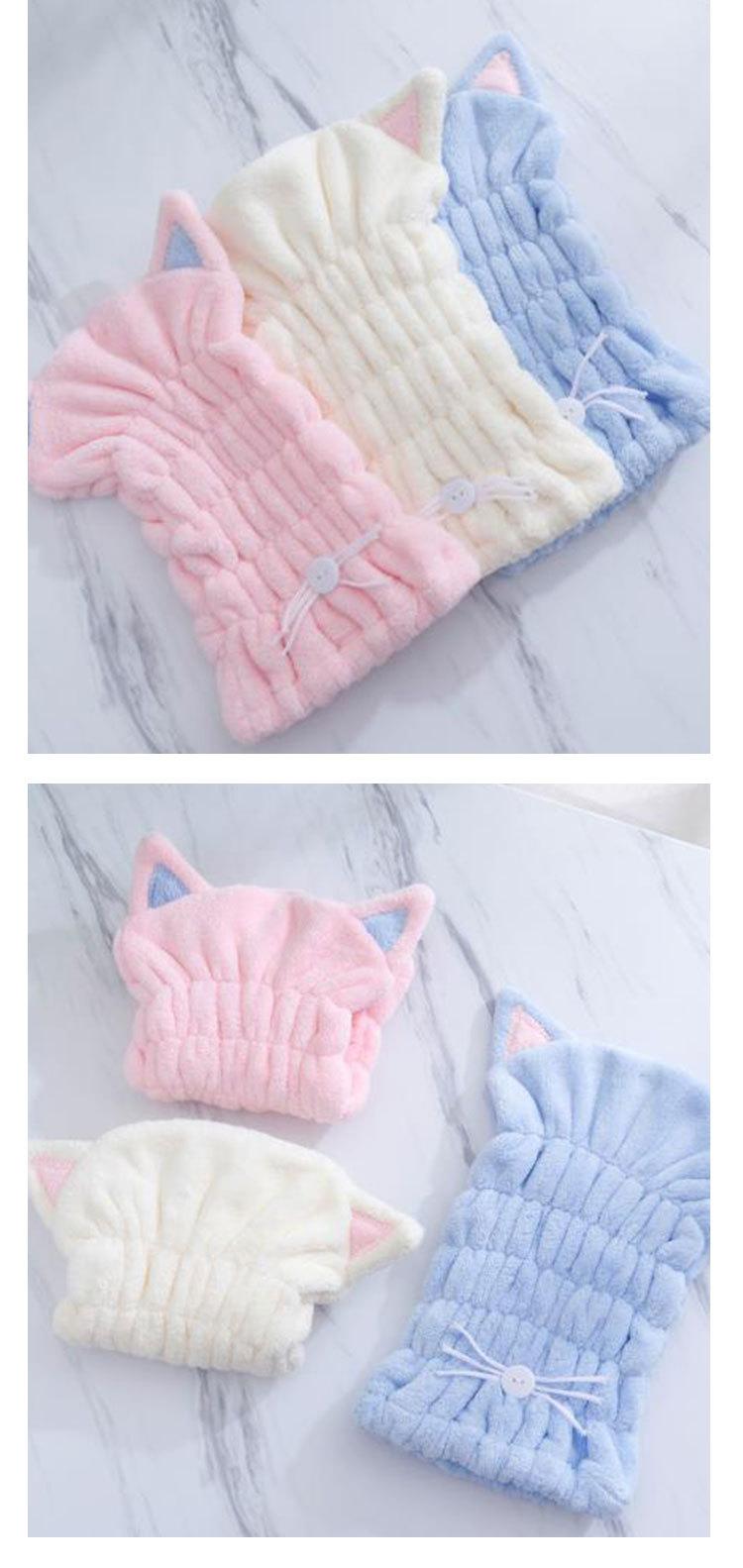 Compra Gorro de ducha de vellón coralino de fábrica, gorro arrugado de gatito de dibujos animados, gorro liso para el hogar absorbente de agua, suave, para secar el cabello, LOGO al por mayor en Joom.pro