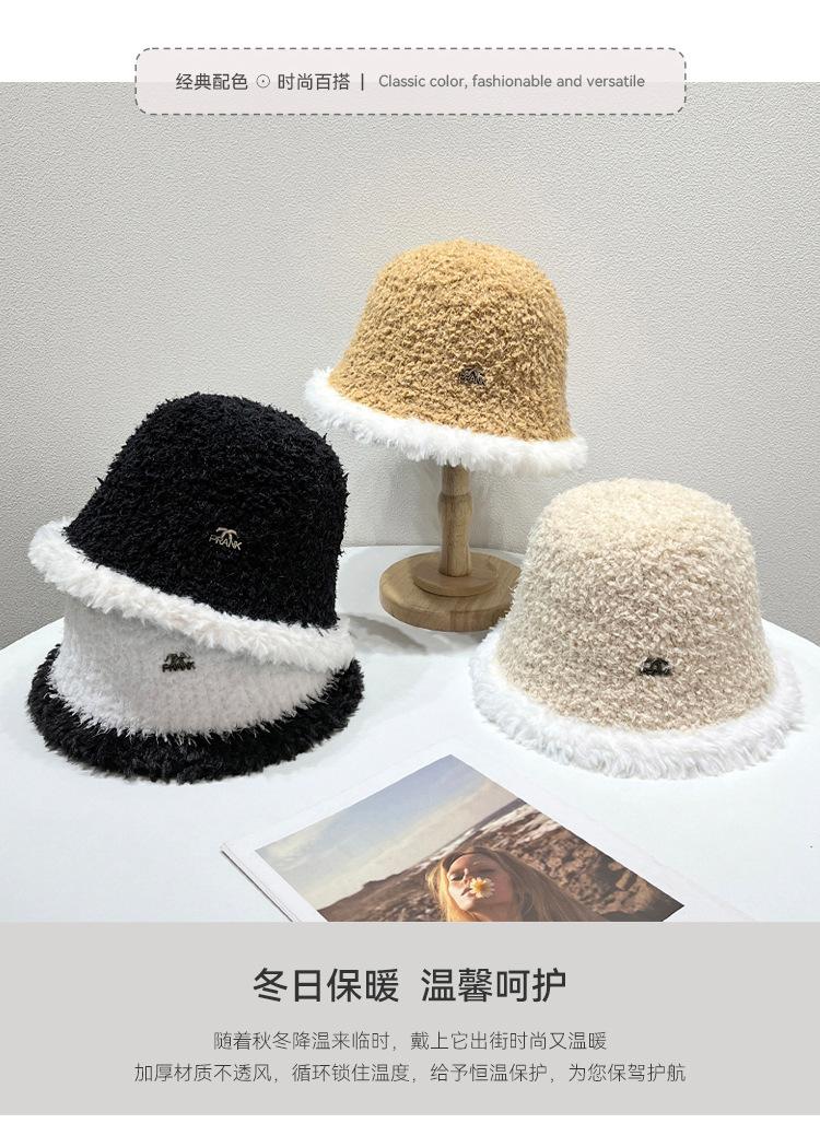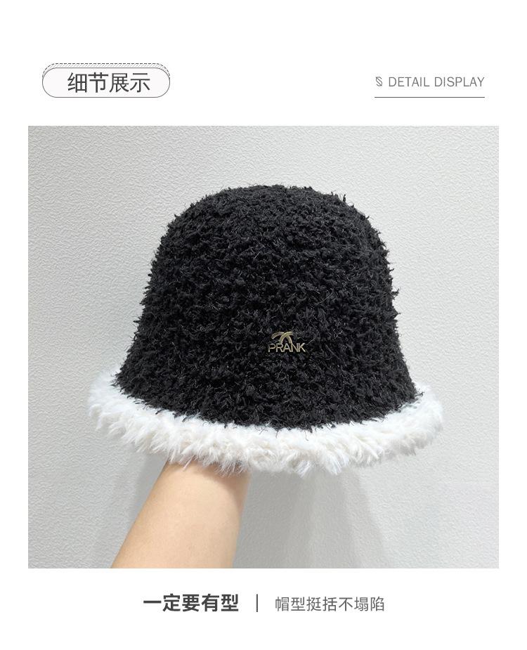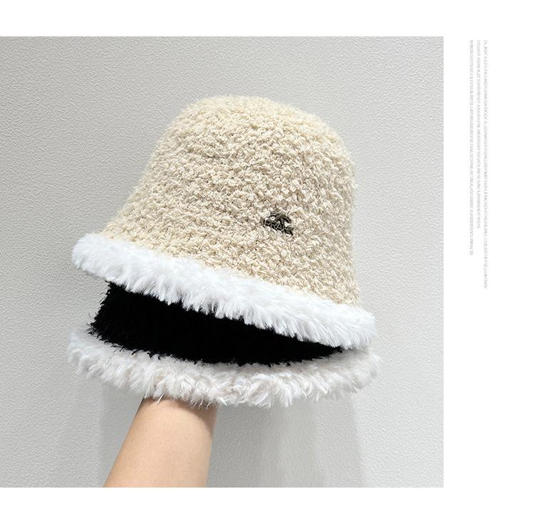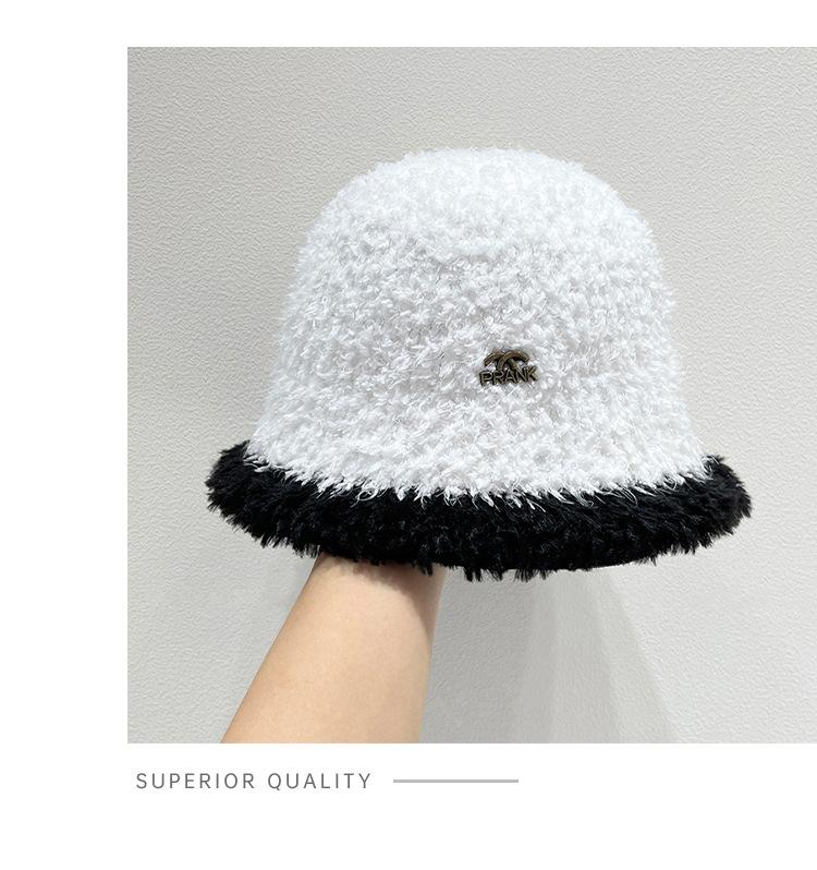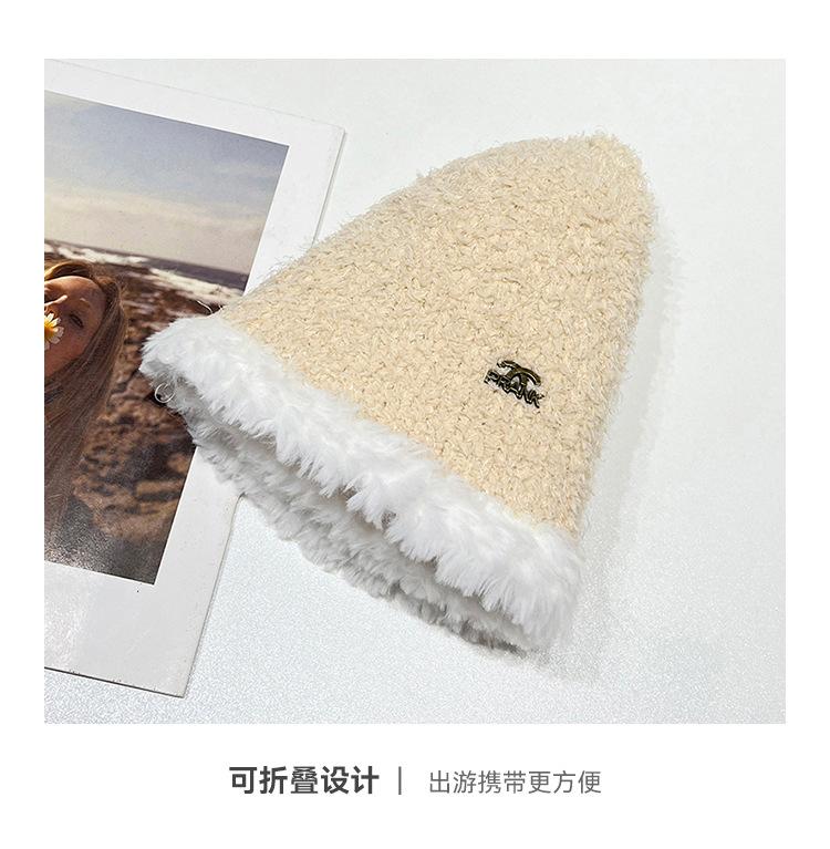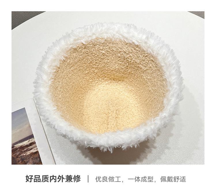 2023 nuevo gorro de pescador de punto de felpa para mujer, gorro de pescador versátil de invierno a juego con colores, gorro pequeño con aspecto de cara japonesa