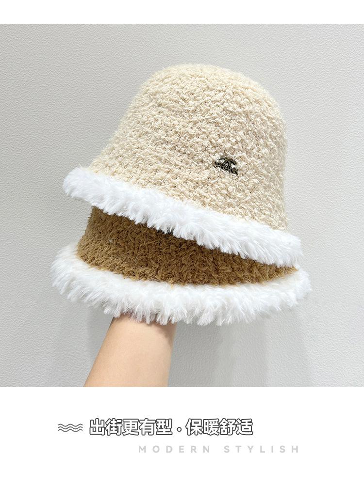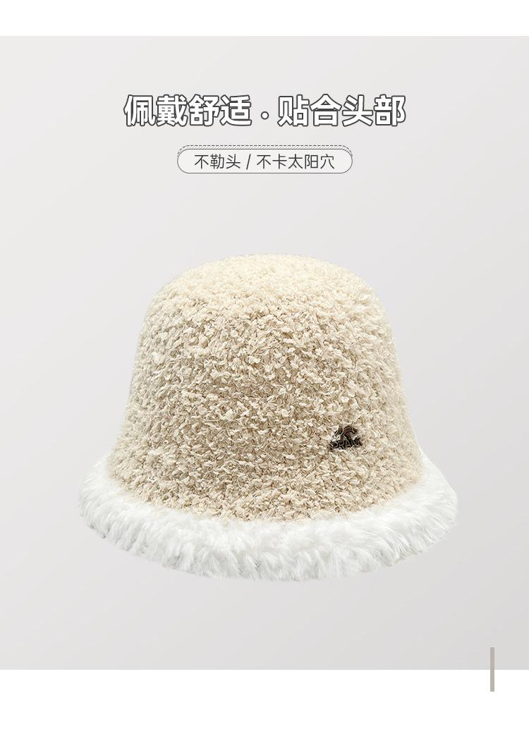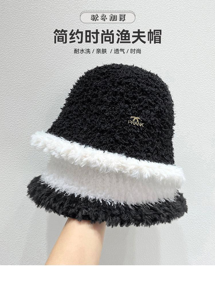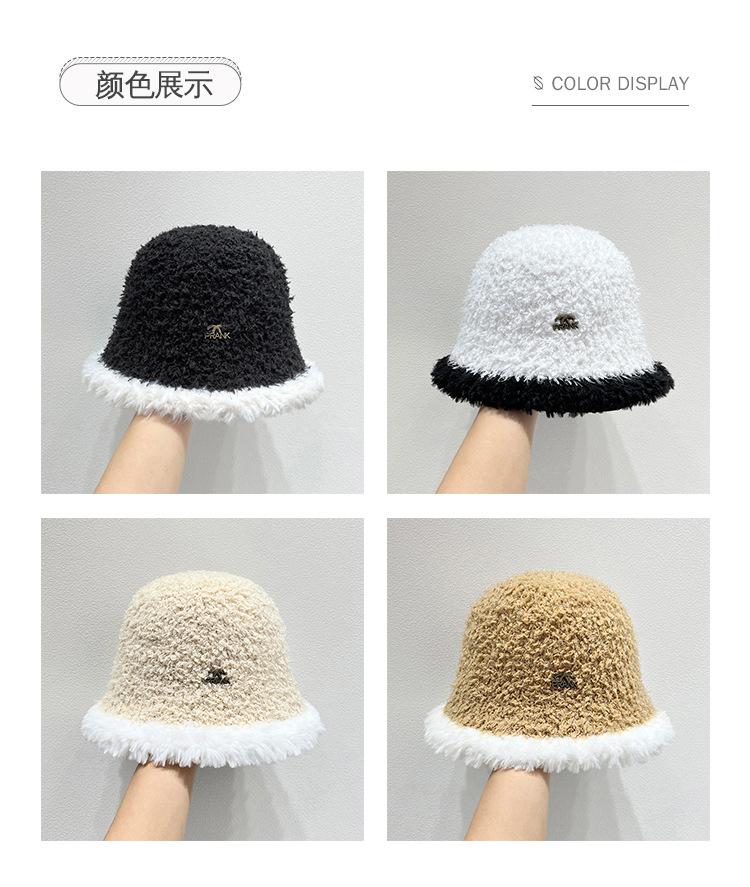 2023 nuevo gorro de pescador de punto de felpa para mujer, gorro de pescador versátil de invierno a juego con colores, gorro pequeño con aspecto de cara japonesa