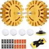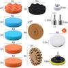 【Paquete Incluido】- El juego de herramientas para quitar adhesivo de calcomanía de coche incluye 2 discos de goma de 4 pulgadas de diferentes formas, 6 almohadillas de pulido de esponja de 4 pulgadas de diferentes colores y formas, 2 almohadillas de pulido de lana de 4 pulgadas, 1 plato de respaldo de plástico de 4 pulgadas, 2 adaptadores para taladro.