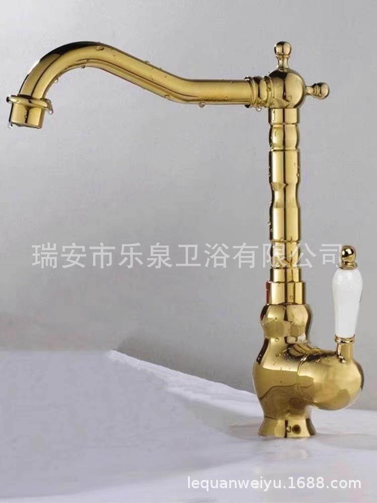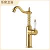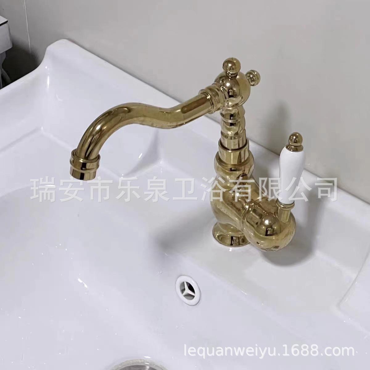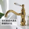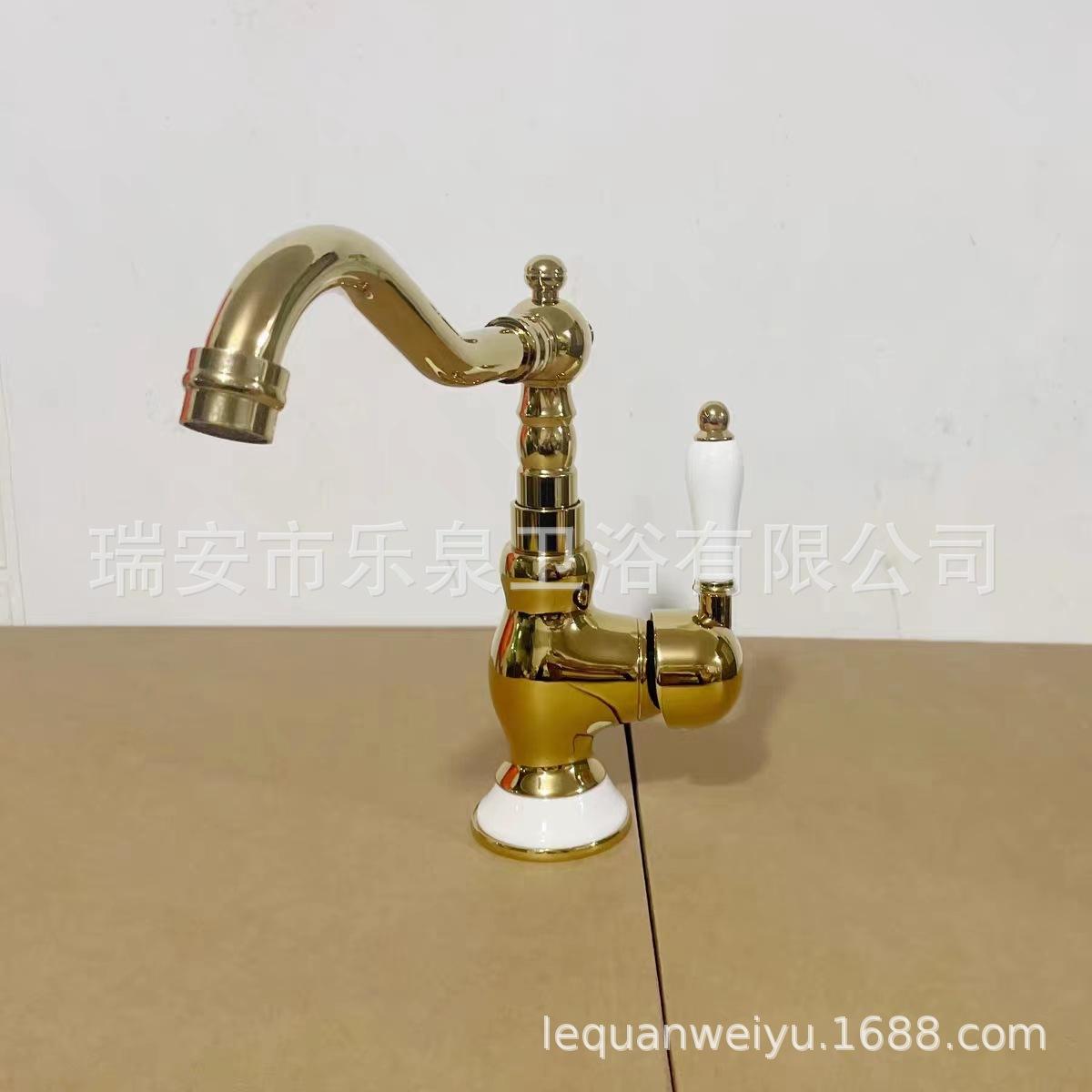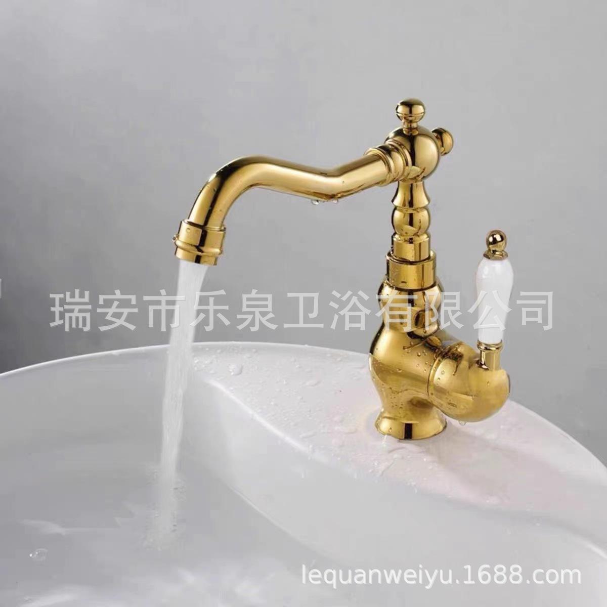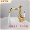 Grifo de latón de un solo orificio con rotación de agua fría y caliente de estilo francés transfronterizo Grifo de lavabo bajo encimera dorado de estilo europeo