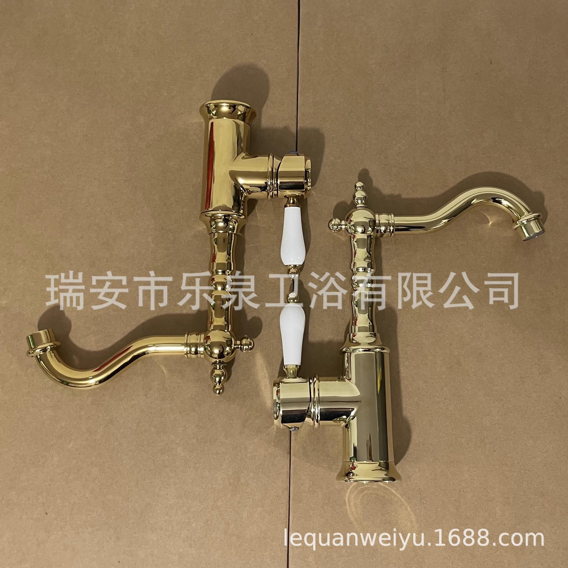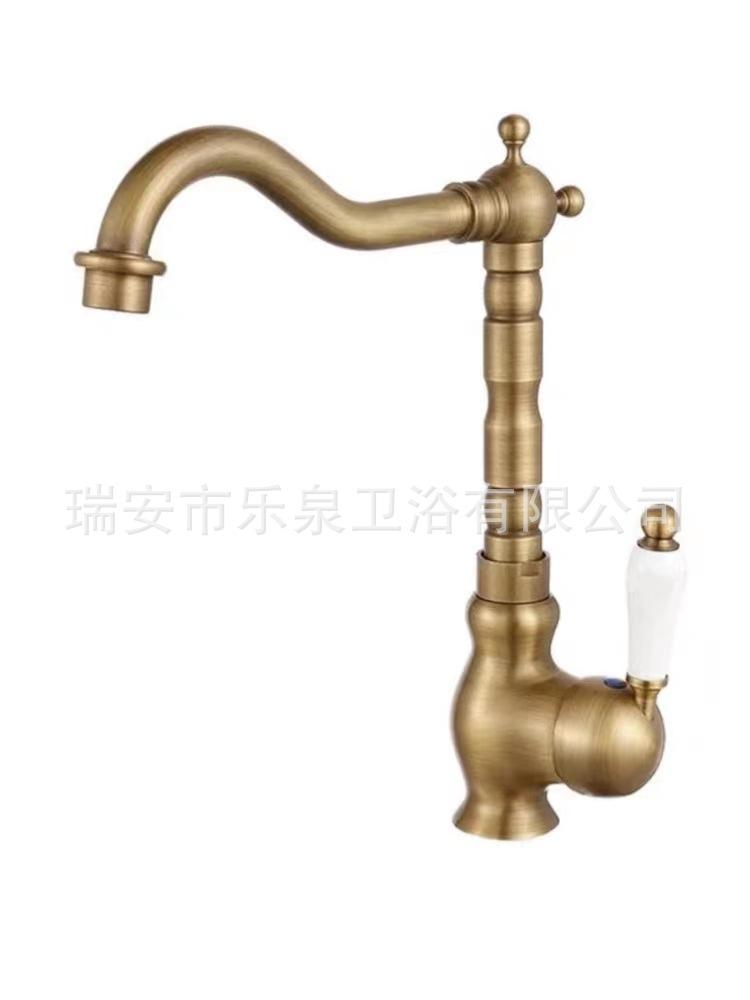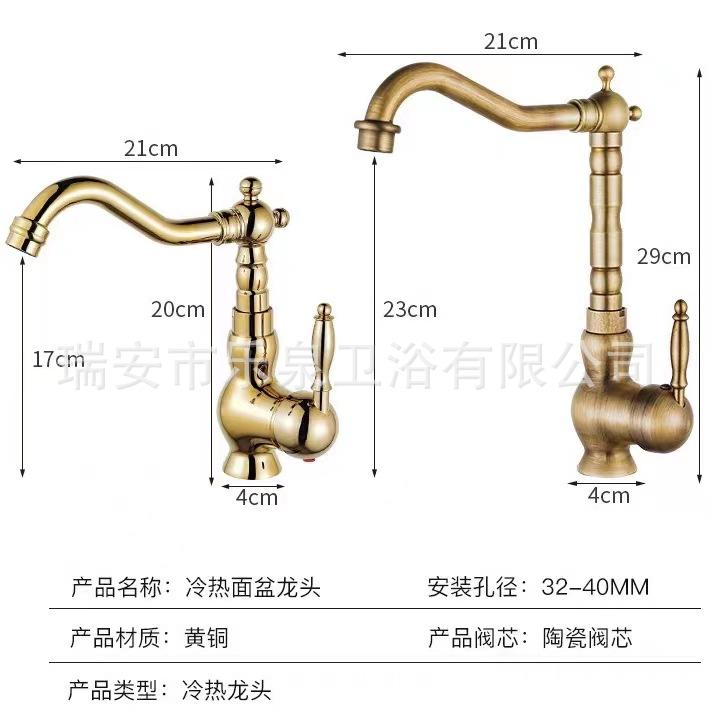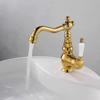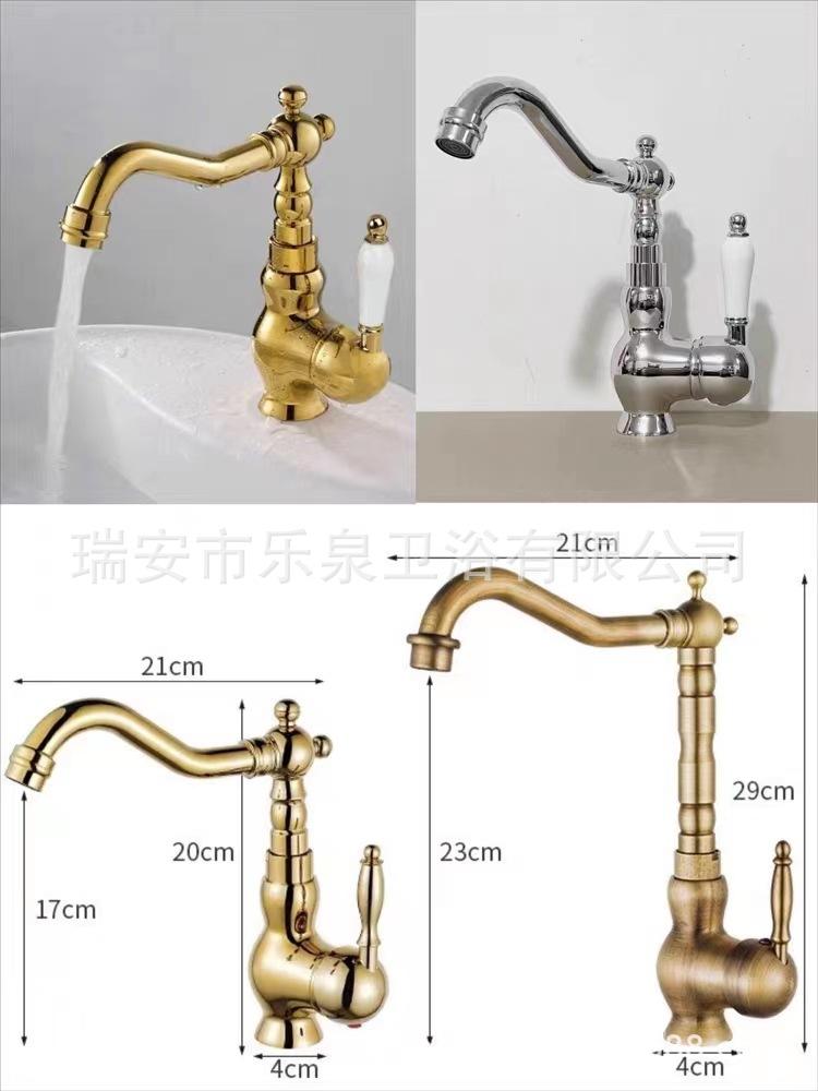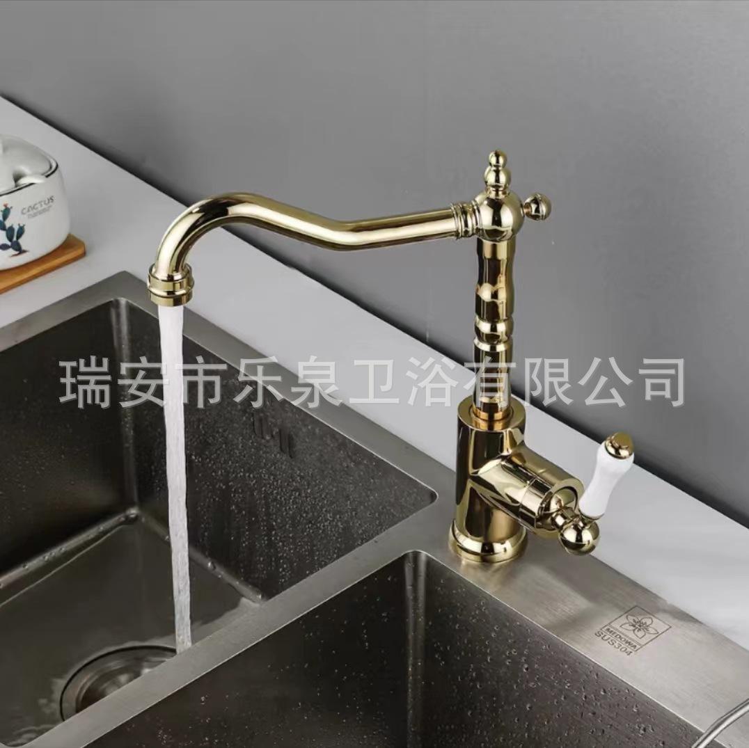 Grifo de latón de un solo orificio con rotación de agua fría y caliente de estilo francés transfronterizo Grifo de lavabo bajo encimera dorado de estilo europeo
