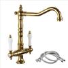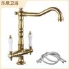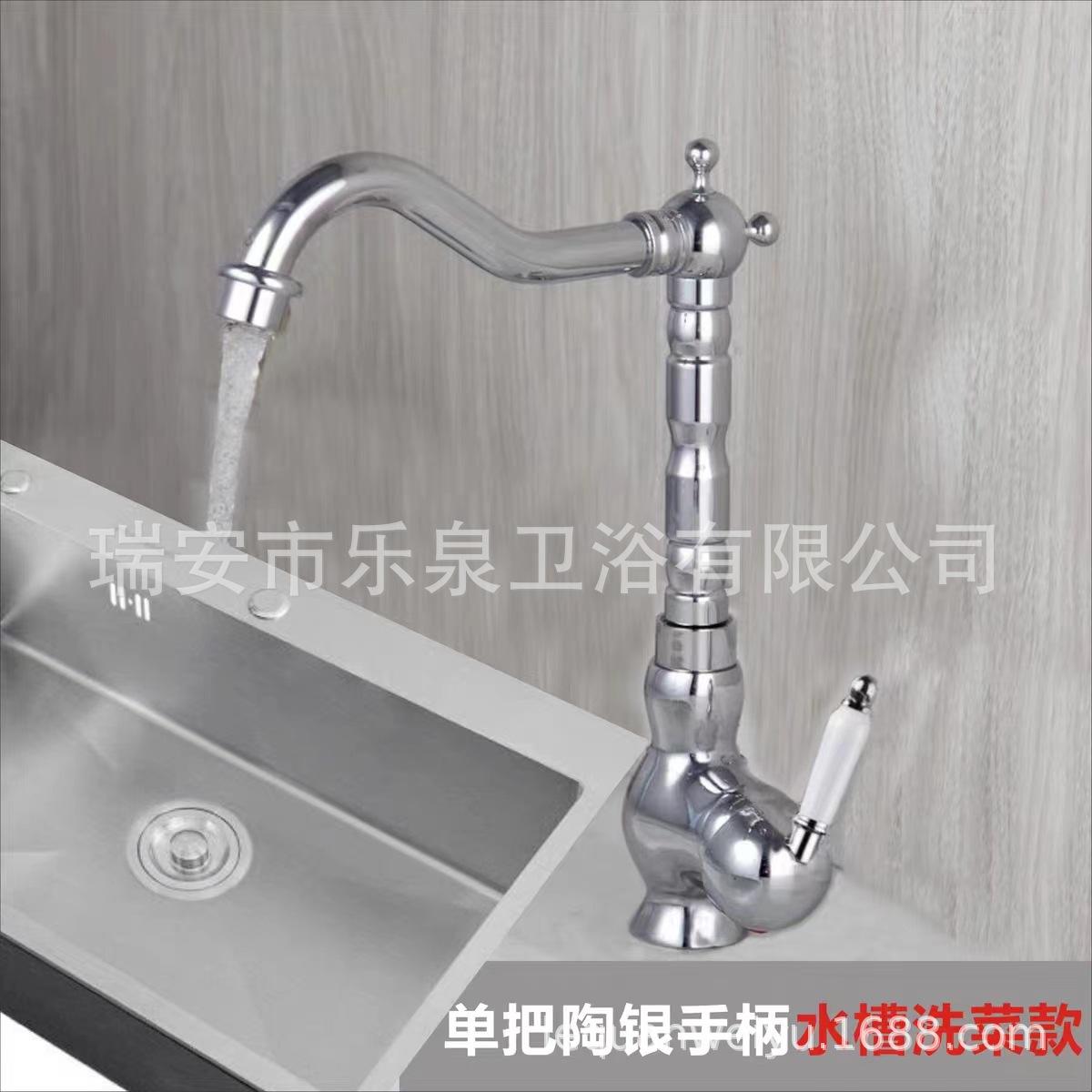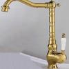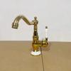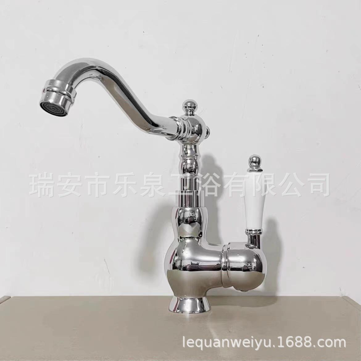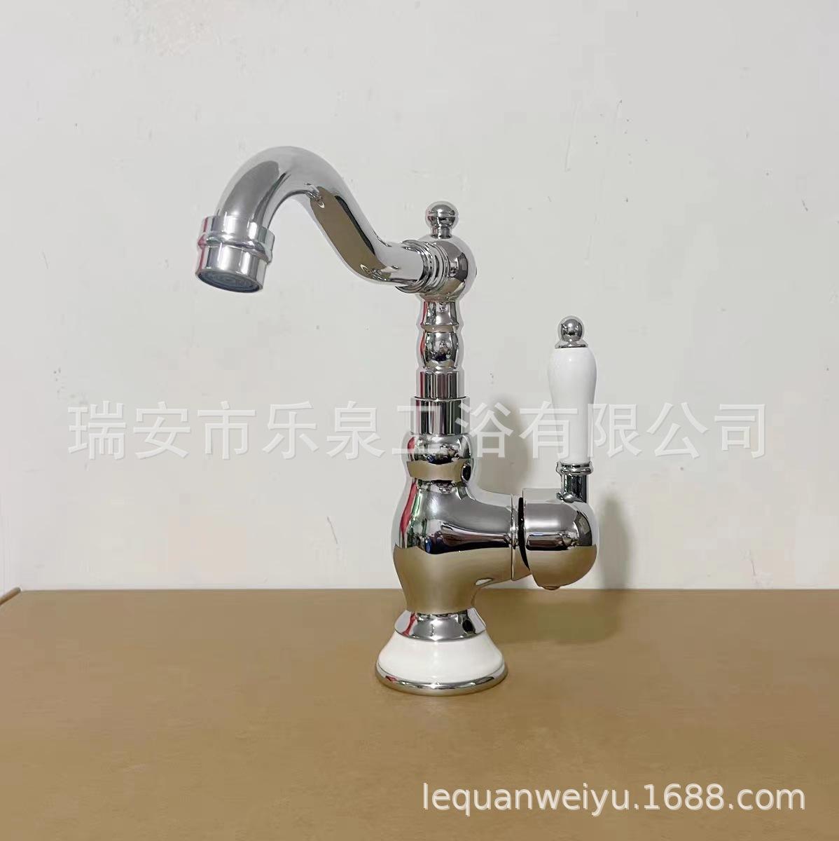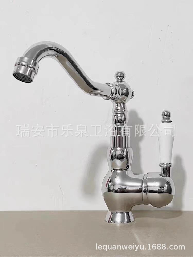Grifo de latón de un solo orificio con rotación de agua fría y caliente de estilo francés transfronterizo Grifo de lavabo bajo encimera dorado de estilo europeo