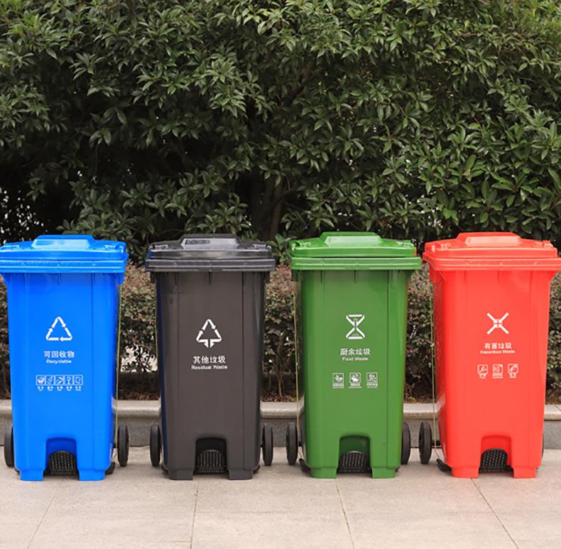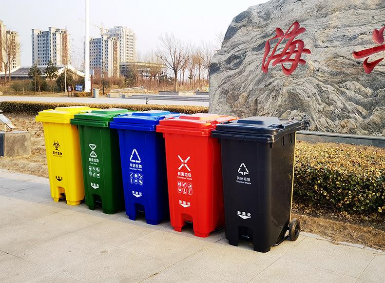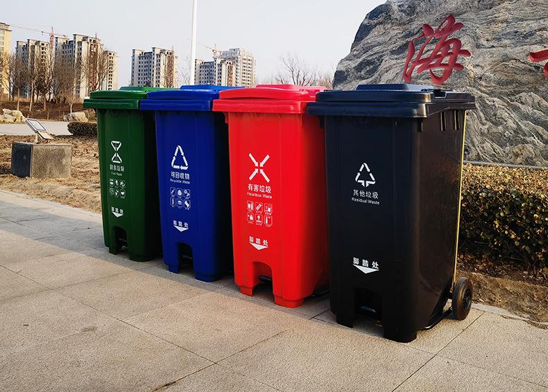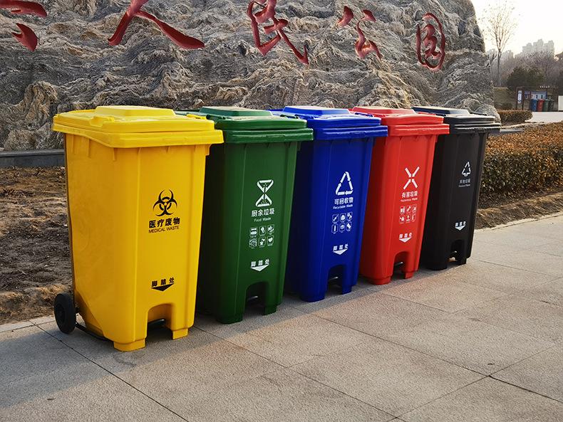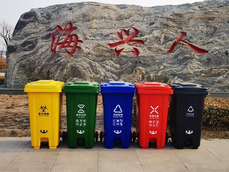 Contenedor de basura para exteriores 240L tipo pedal con tapa polea grande clasificación sanitaria fabricantes de contenedores de basura de plástico engrosado