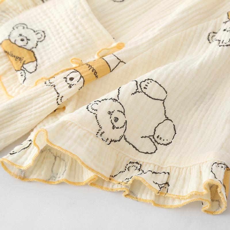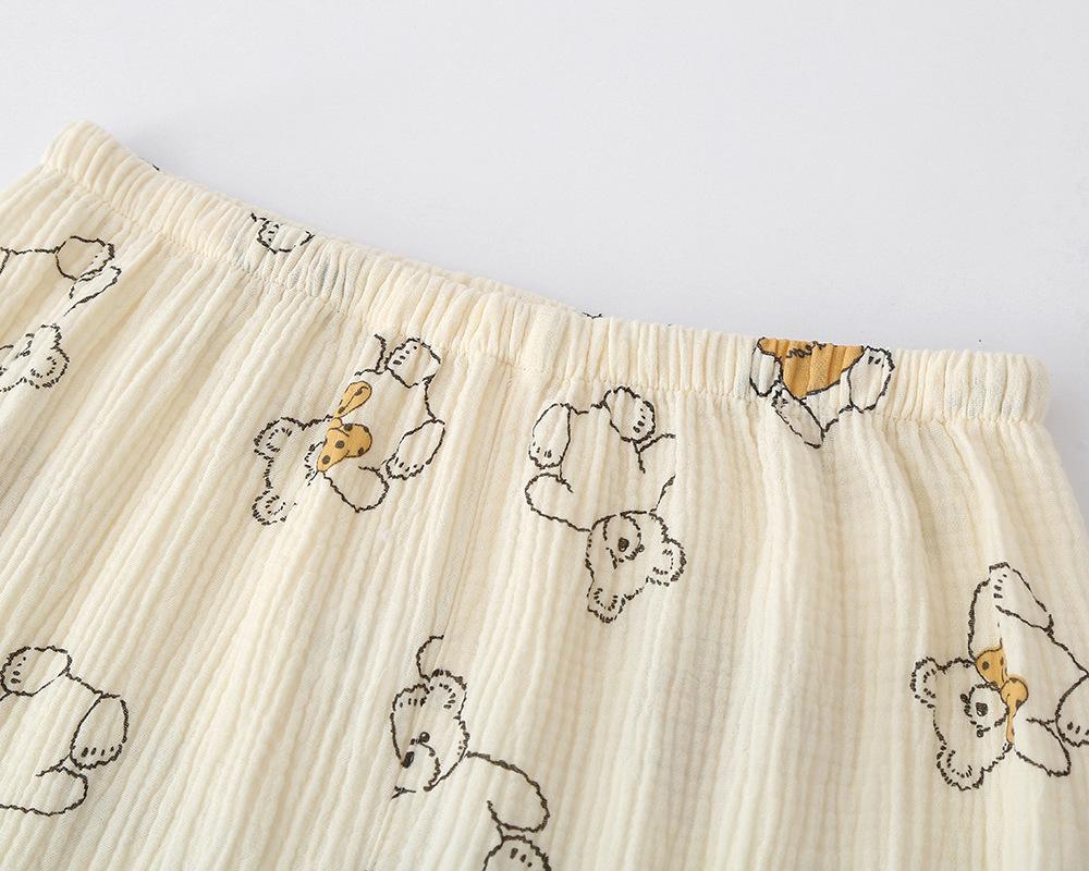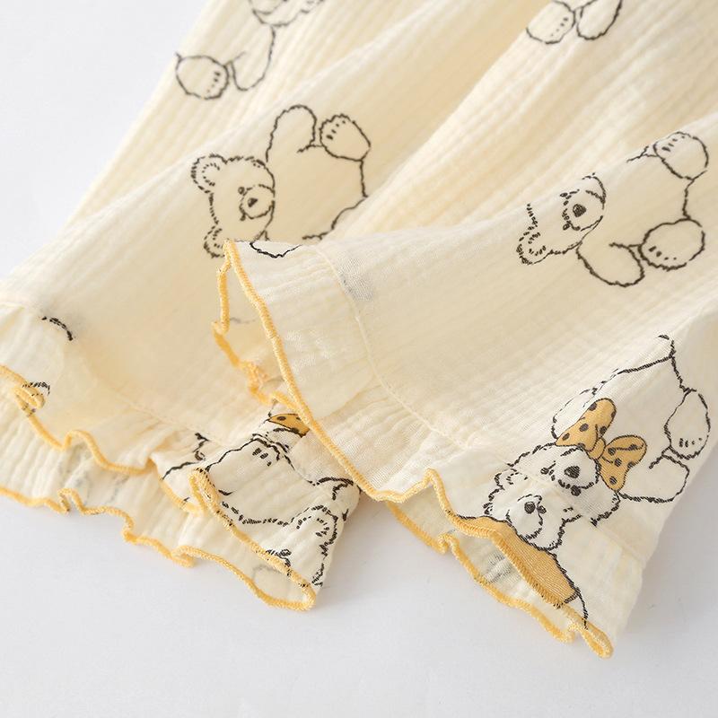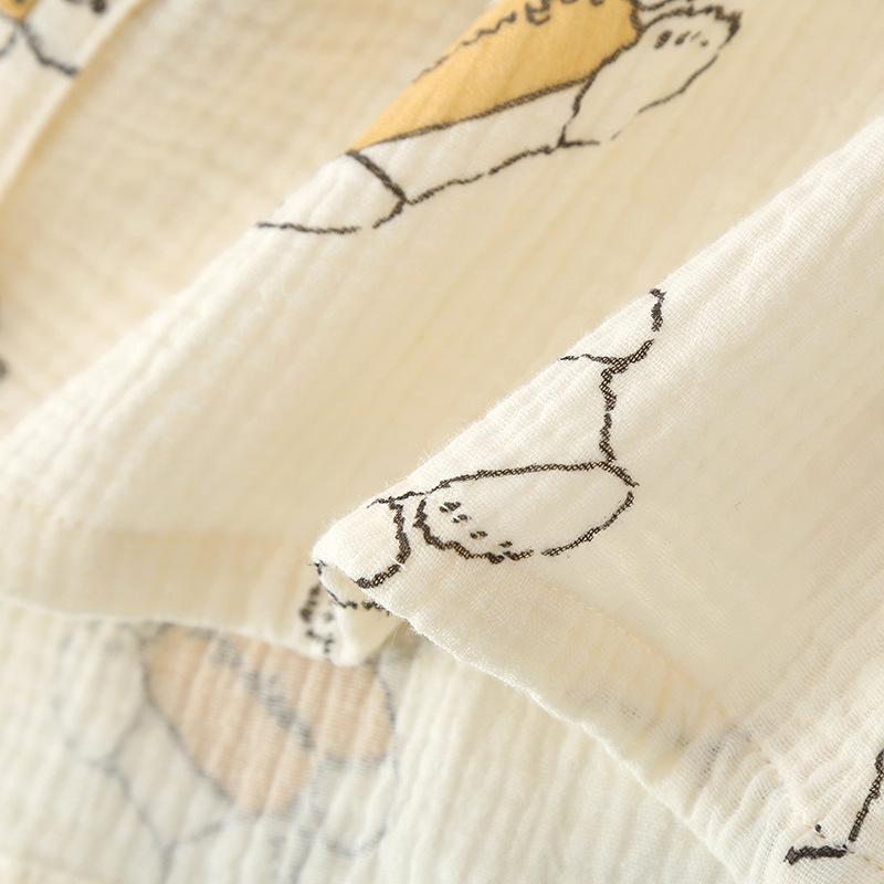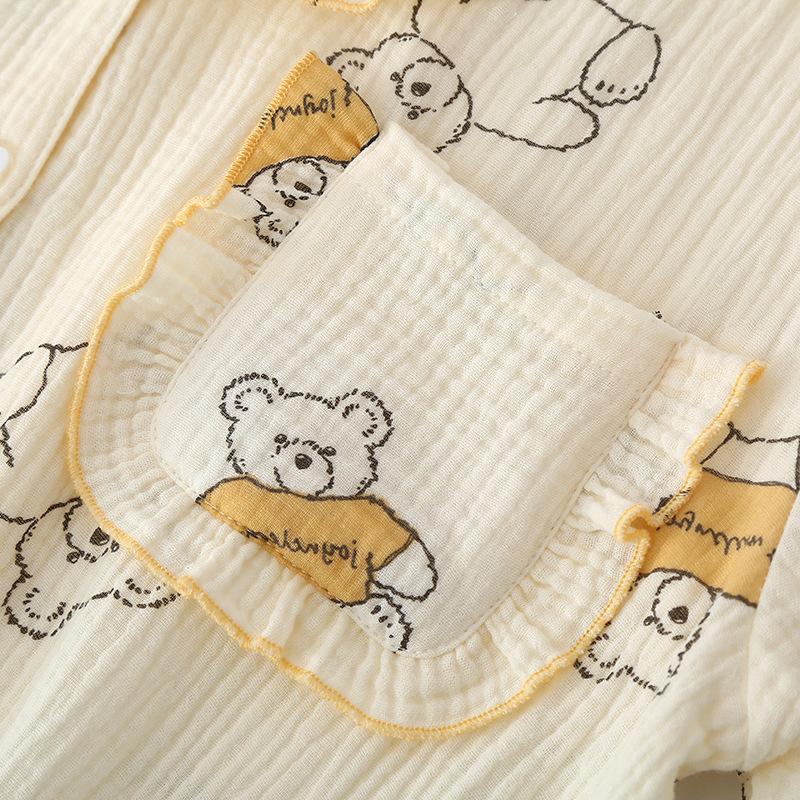 Pijama de Algodón Puro para Mujer Verano Delgado Manga Corta Pantalones Cortos Dulce Absorbente de Sudor Verano Otoño Tres Piezas Ropa para el Hogar