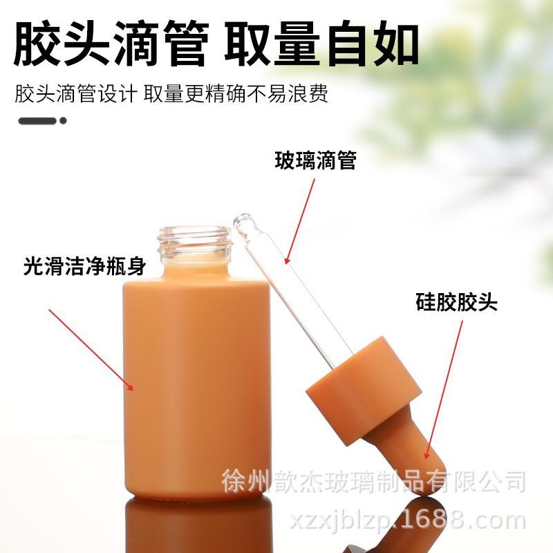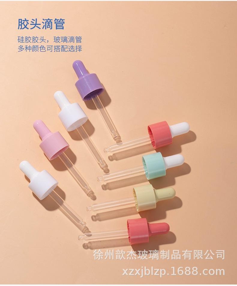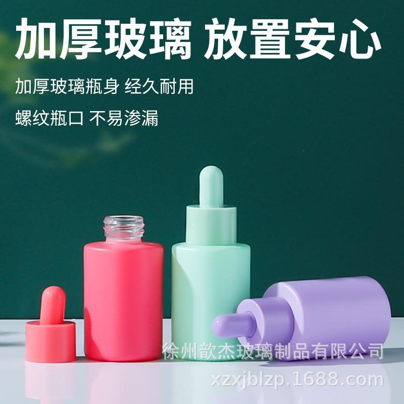 Botella de aceite esencial de macarrón de 30 ml, botella de vidrio, muestra cosmética, botella cuentagotas de plástico con hombro plano, subbotella de esencia de vidrio