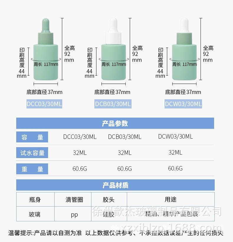 Tamaño de la botella de 30 ml: 37*67 mm Tamaño del juego completo: 37*93 mm