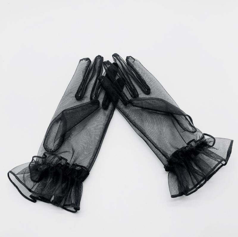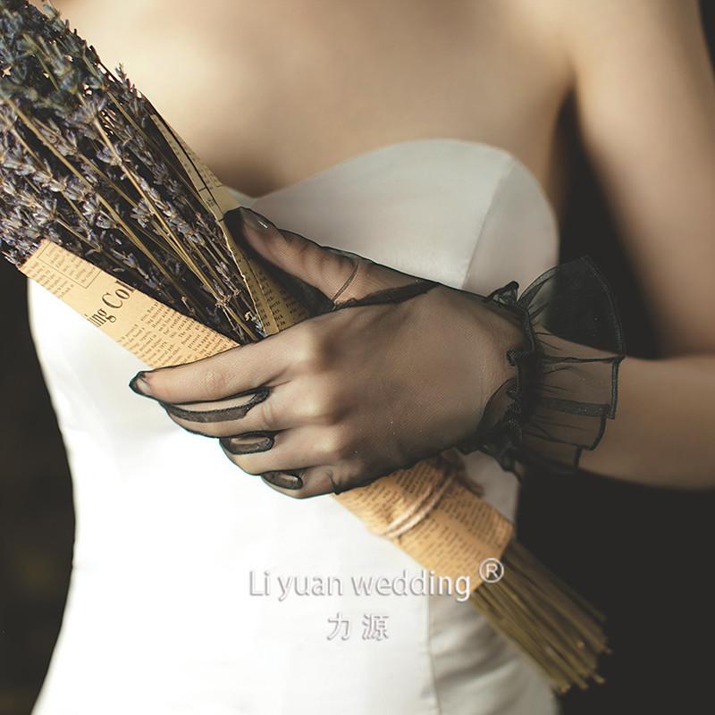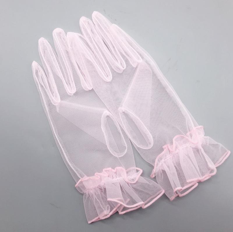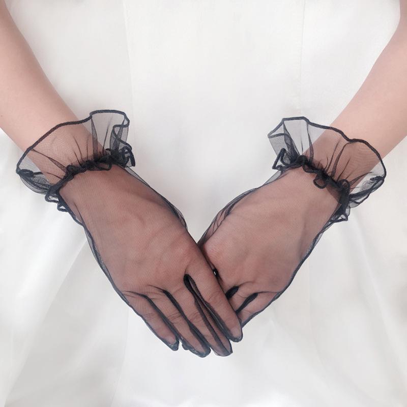 Boda Novia Vestido de Novia Ropa de Noche Encaje Guantes con Volantes Multicolor Transparentes Delicados Cortos para Actuación Cosplay