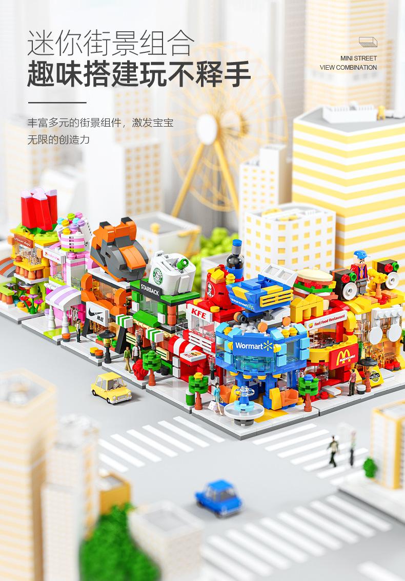 Hermanos Lele venta al por mayor compatibles con Lego partículas pequeñas Vista de la calle bloques de construcción Ilustración juguetes para niños montaje de inteligencia Aeroespacial