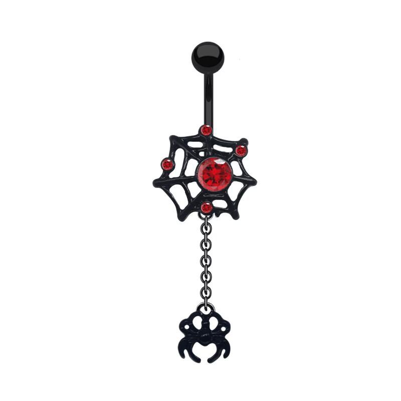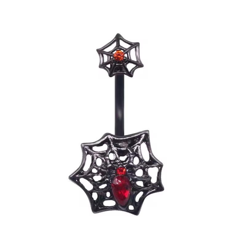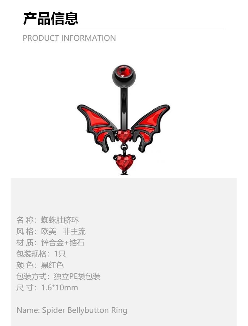 Anillo de ombligo de aleación de zinc con colgante de telaraña roja transfronteriza, joyería para el ombligo superior e inferior en forma de corazón, joyería para perforar el ombligo en las uñas, fabricante de joyas