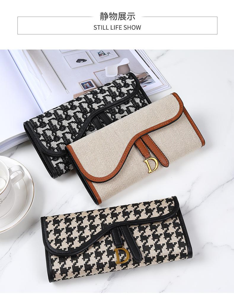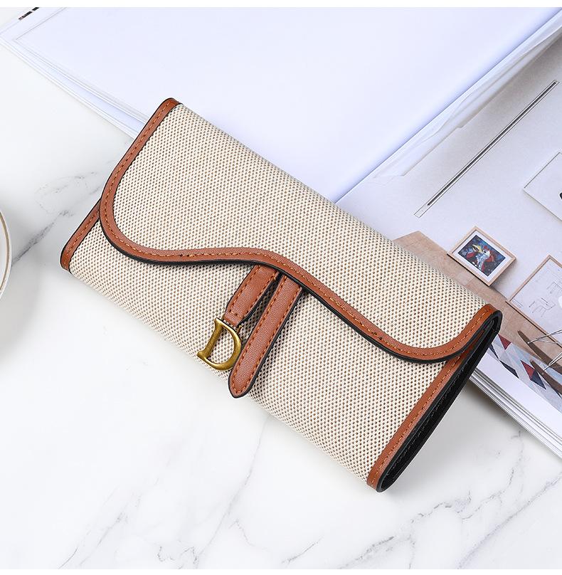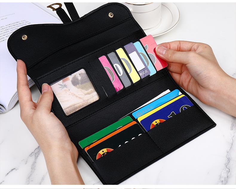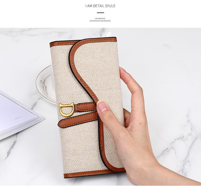 Billetera retro europea y americana para dama larga de gran capacidad hebilla D multi-tarjeta comercio exterior multifuncional triple clutch al por mayor