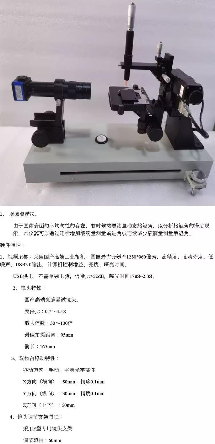 Instrumento de medición de ángulo de contacto detección dinámica de ángulo de gota de agua probador automático de tensión superficial de líquidos para semiconductores de oblea
