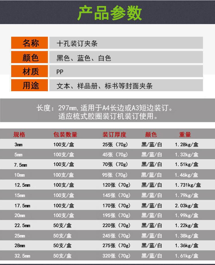 Diez 10 agujeros abrazadera de encuadernación tira de encuadernación máquina abrazadera de plástico tira de plástico de 21 agujeros 3 a 32,5 mm