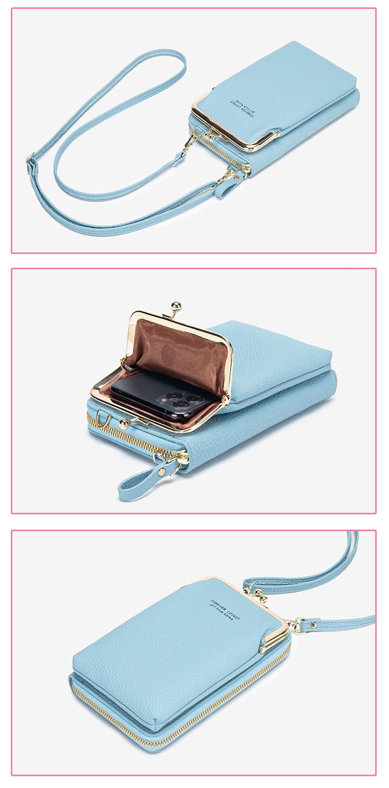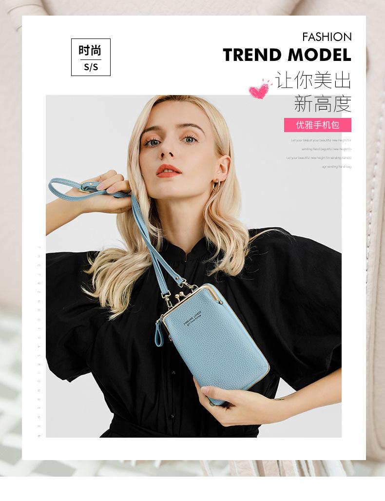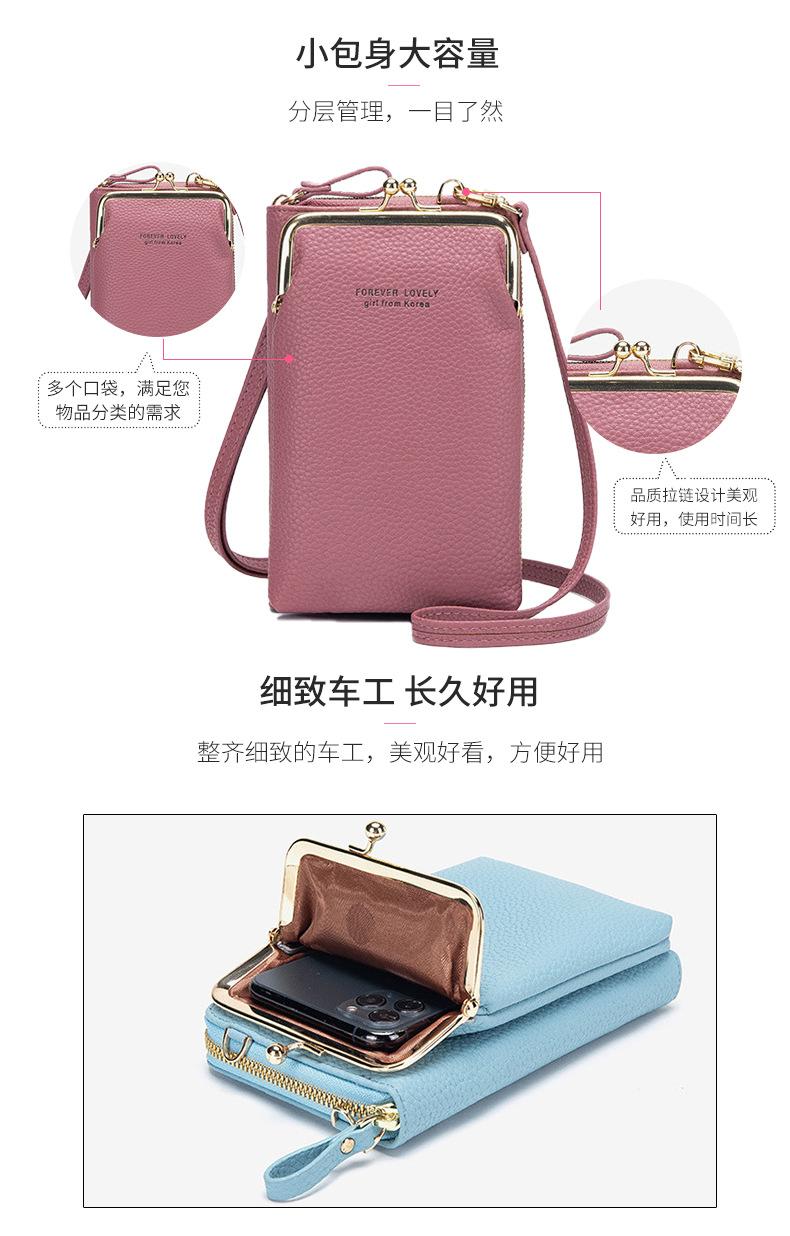 Bolso para Teléfono Móvil Transfronterizo Bolso Cruzado de Cuero PU Bolso de Hombro Antirrobo RFID Portátil Multifuncional Billetera para Teléfono Móvil Japón y Corea