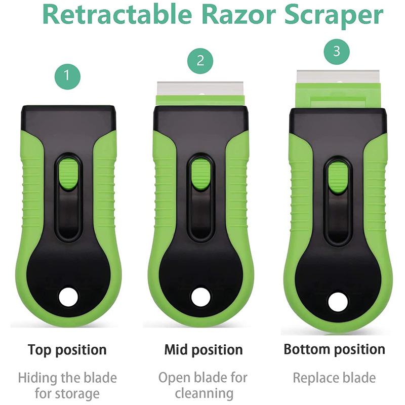Juego de 11 piezas de raspador de cerámica removedor de adhesivo para calcomanías de coche vidrio tapa de horno adhesivo hoja de afeitar de acero inoxidable
