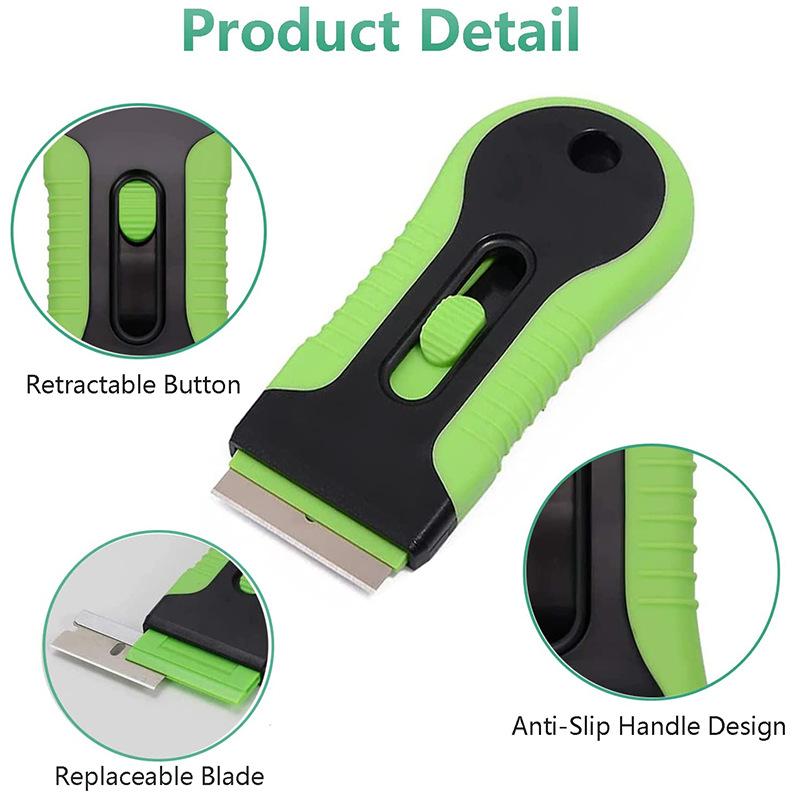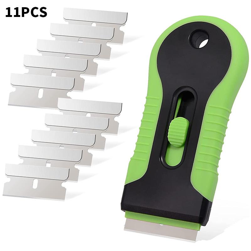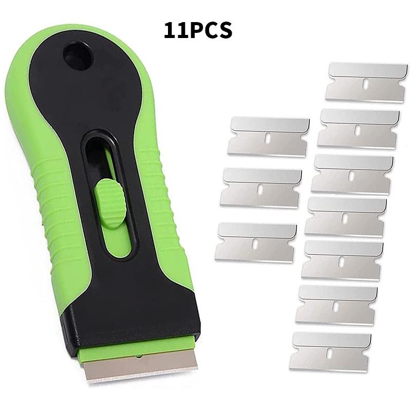 11-piece set (1 green and black hand push handle scraper 10 metal blades)