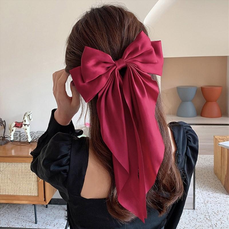 Pinza para el cabello de lazo grande rojo para la parte posterior de la cabeza, nuevo estilo 2022, pinza para el cabello negra con resorte, elegante accesorio para el cabello para cabellos sueltos