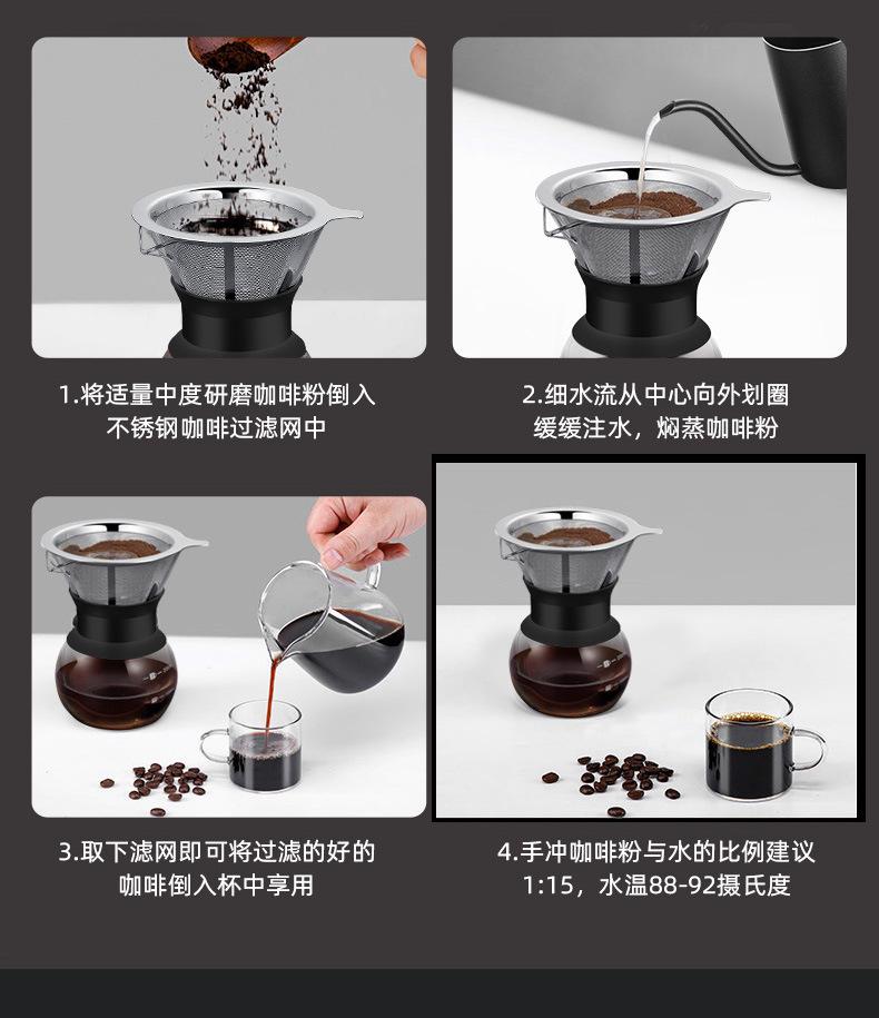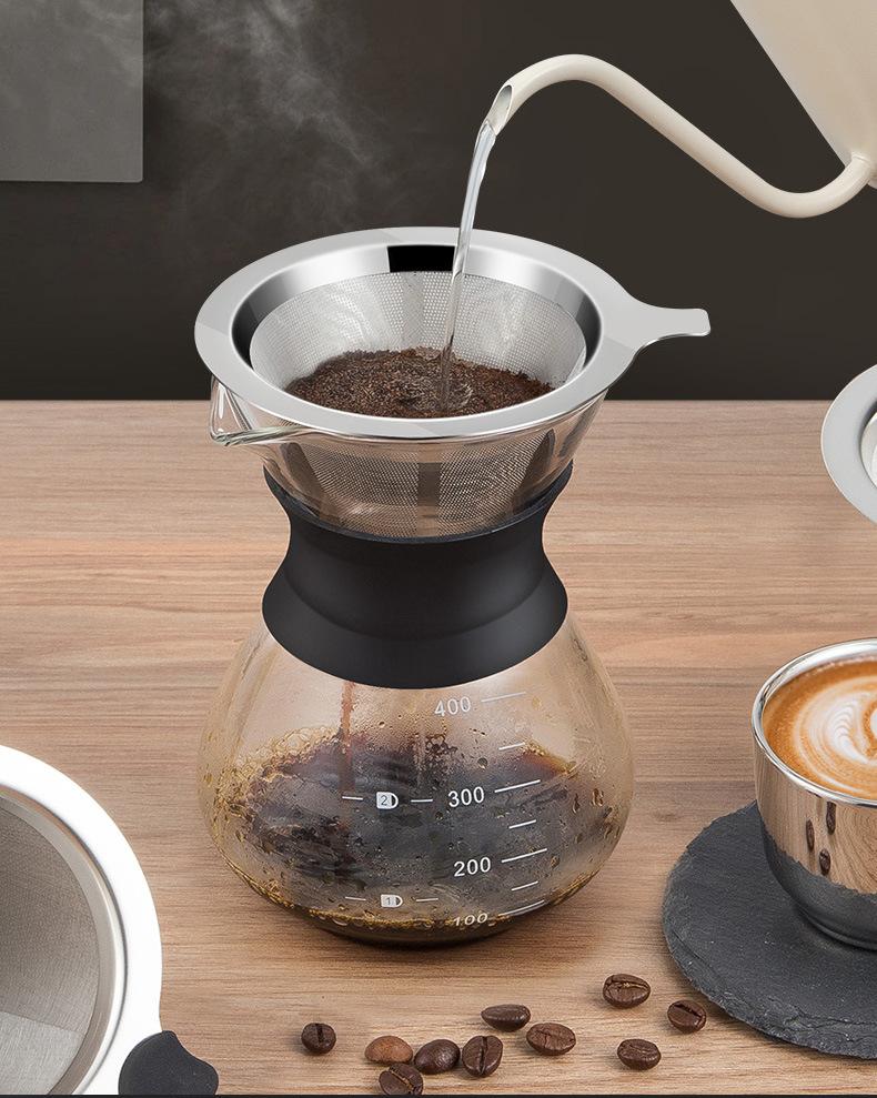Colador de acero inoxidable filtro Taza embudo cafetera de mano para el hogar cafetera para compartir café aparato de café de vidrio