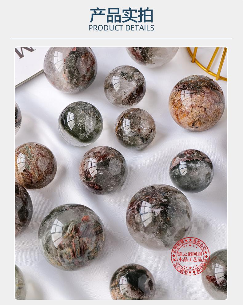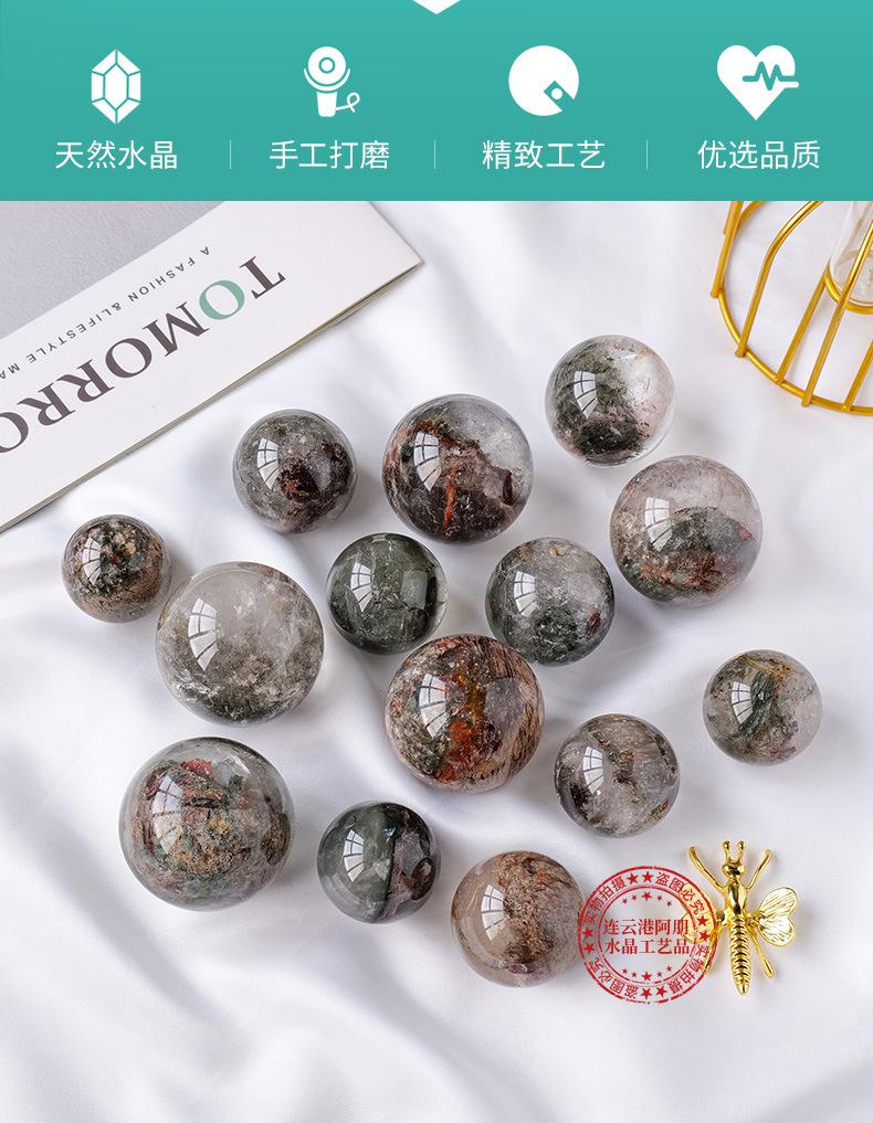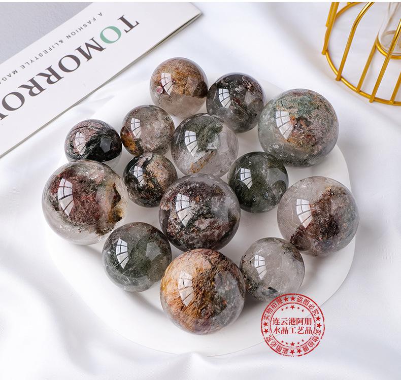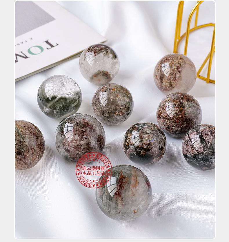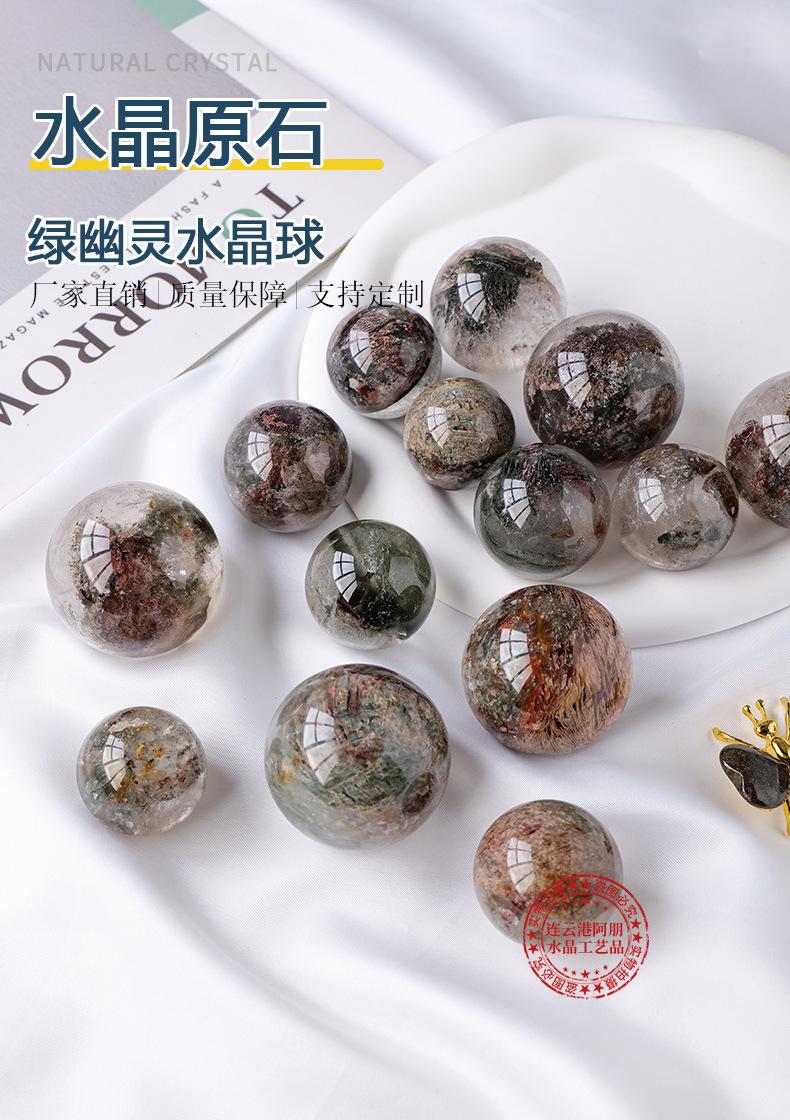 Adornos de bola de cristal fantasma verde natural, piedra original pulida, piedra de energía desmagnetizante, adornos de decoración de escritorio para el hogar al por mayor
